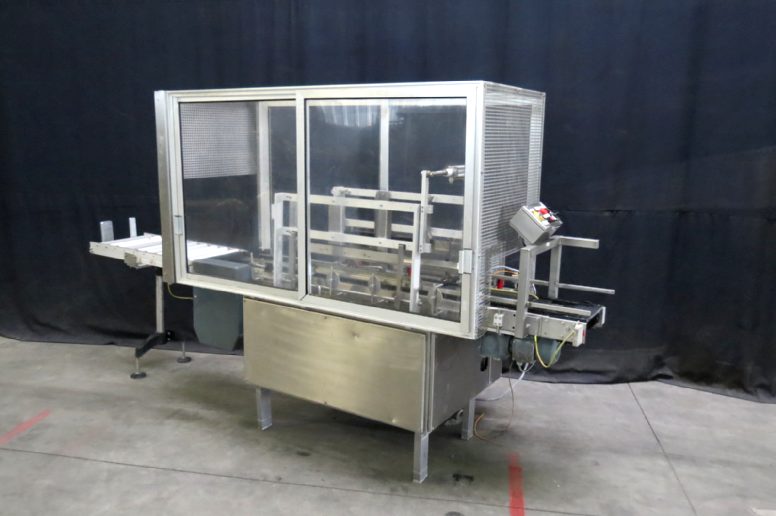 Tray stacker to stack 2-5 already filled carton tray with plastic cup on to eachother. 2 trays are stacked at the same time. Total Dimensions: 238 x 114 x 193 cm (l x w x H). Outfeed conveyor 107 x 48 x 105 cm (l x w x H). Controls incomplete.