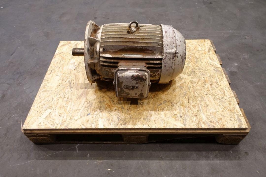 Electric motor of a Alfa Laval separator. Motor: 15 kW - 1460 rpm - 50 Hz. Axle length: 110 mm. Axle diameter: 42 mm.