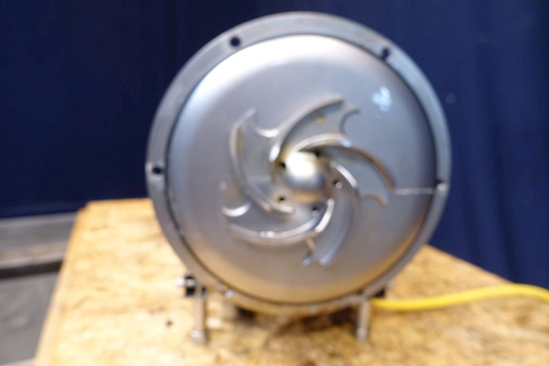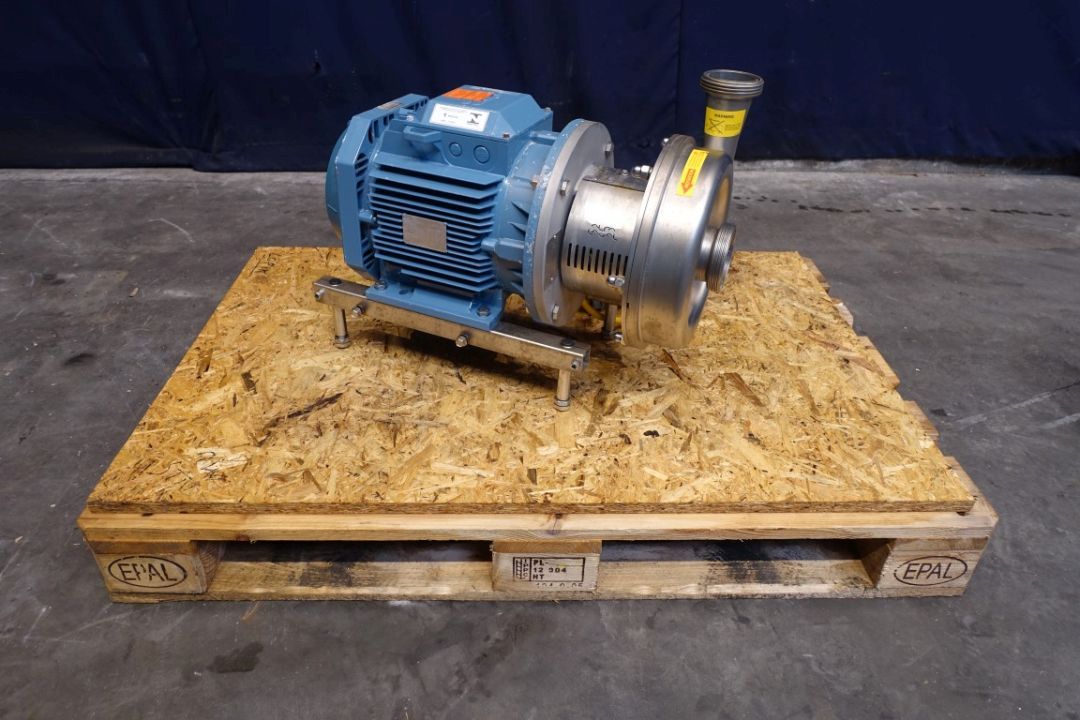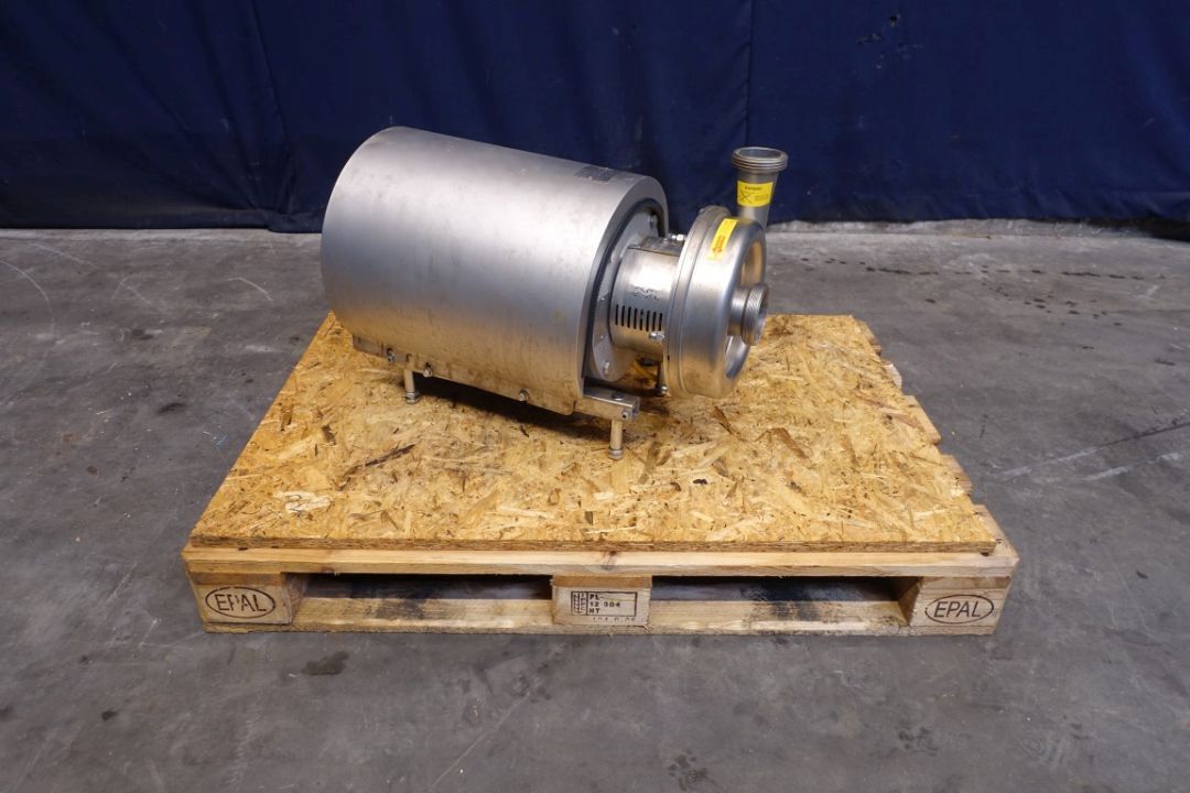 Sanitary centrifugal pump. Current motor: 7,5 kW - 15,5 A - 1.462 rpm - 50 Hz. Impellor diameter: 165 mm. Connections: 3'' / 2,5'', SMS. Total dimensions: 68x38x48 (lxwxh) cm - weight: 127 kg.
