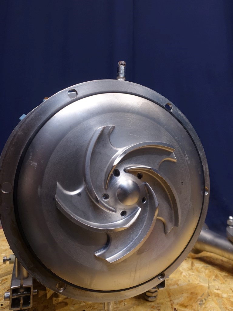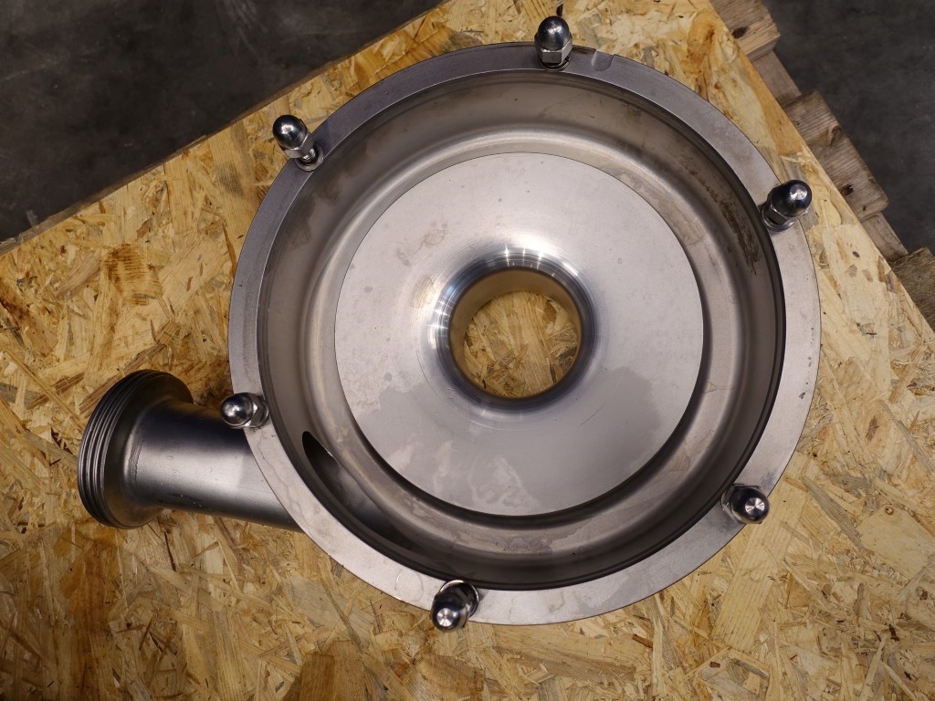 Sanitary centrifugal pump. Current motor: 11 kW -20,5 A - 2915 rpm. Impellor diameter: 175 mm. Flushed seal. Connections: 3'' / 2,5'', DIN.