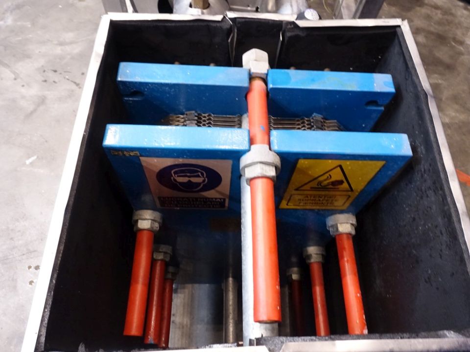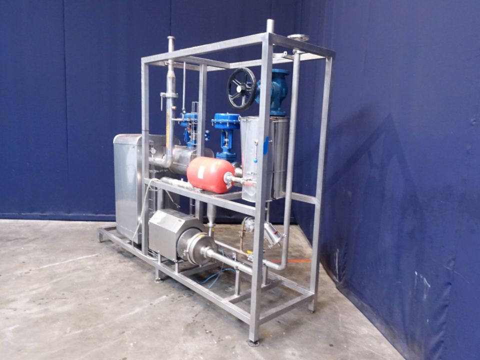Hotwater set. PHE: Pressure: 7 bar. Beam length: 70 cm, connections: 4'', flange. Currenct configuration: 1 Section: 19 plates - Connections head: 2 up / 2 down. Including Alfa Laval centrifugal pump, year 2009. Type: SOLIDC 2/175 SSS. Motor: 5,5, kW serial number: 118605. Including piping and valves. Total dimensions: 280 x 75 x 235 cm.
