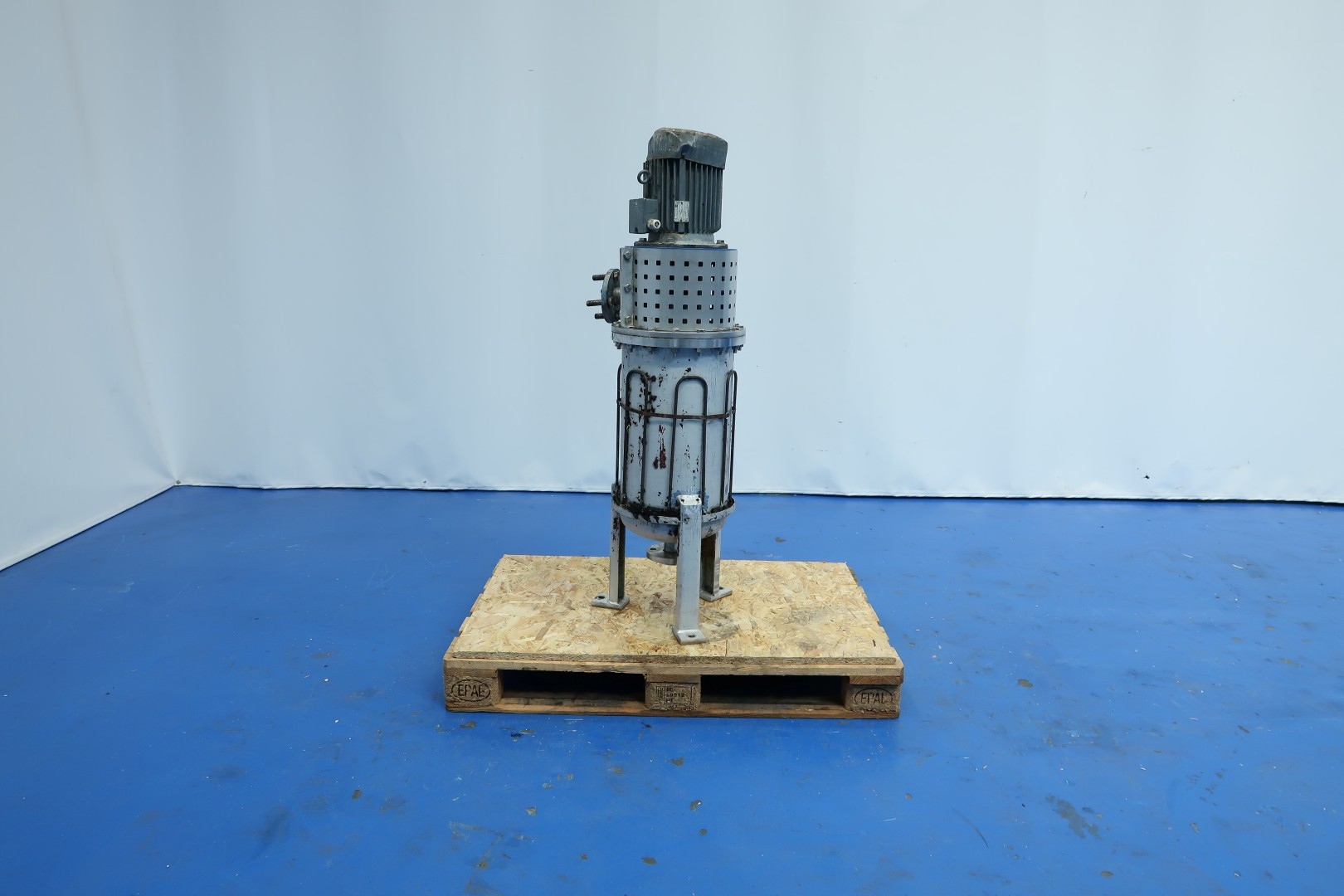 Inline mixer Previously used as a mixer for chemicals in vegetrable oil. With tracing around to keep product warm, capacity ca. 75 ltr, with 2x 20 knives. Inner dimensions; cylindrical height: 57 cm - diameter 29 cm. Outer dimensions: 42x38x136 (lxwxh) cm - weight: 165 kg.