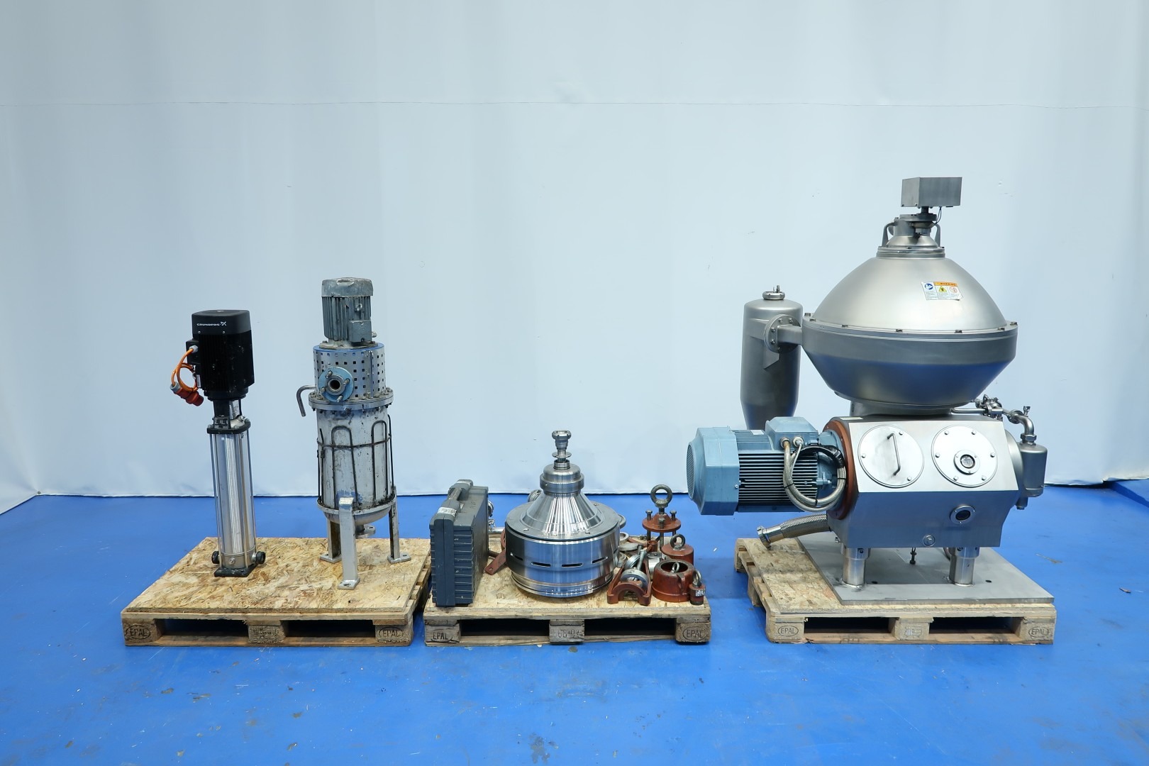 Separator, was used for vegatable fat - oil dehumidification, can be used for separation of any liquids which require to take out water and are below 1kg/ltr, self cleaning. Including bowl, bowl speed: 7.500 rpm, base frame, pneumatic counter pressure valve, OWM and cyclone. Motor 25,0 kW - 1.800 rpm - 60 Hz. Set of tools with ring key and pressing tool. Max. density infeed 1,100kg/m3 on input. Without controls (can be offered upon request).This is a 3 way separator, 1 in and 3 out . Inlet bottom fed (hermetic design), out in top, light clean oil and heavy fase can be water with additives like chemicals, like phosphoric acid and sludge (heavy particles) A separate mix-unit available under STN16080. Documentation: instruction manual and parts list. Dimensions: 155x125x180 (lxwxh) cm - total weight: 1.096 kg. [Valérie Boer 14-04-2026 14:06 (GMT +02:00)] Handleiding boek compleet