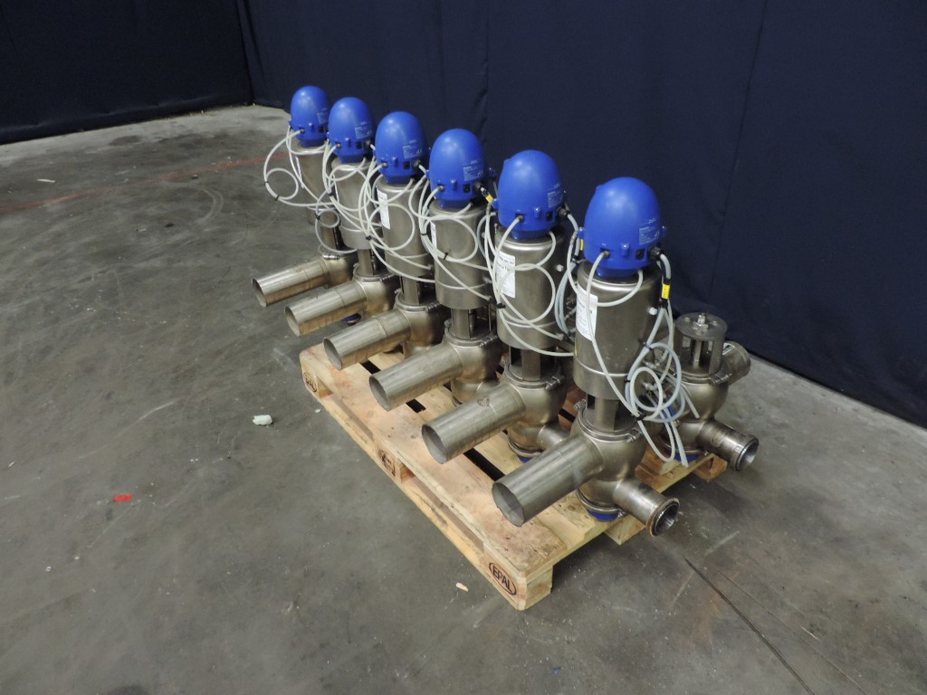 12x Mixproof 4-way valves, top 4'', bottom 3'', 6x with actuator, 6x without actuator. Including think top 6p.