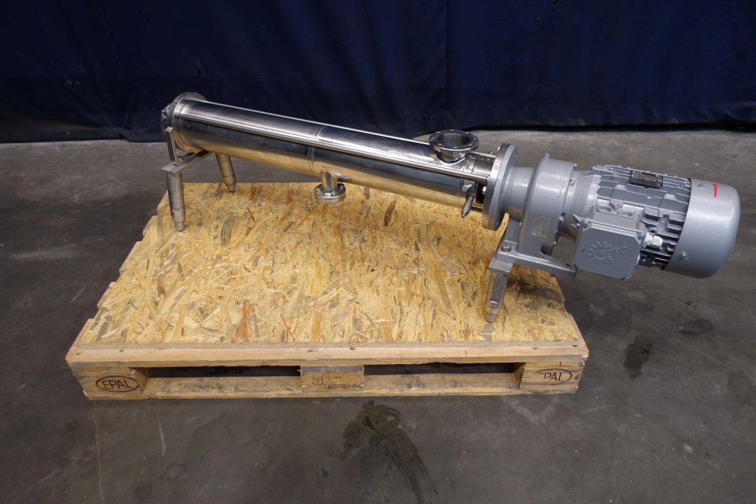 Already reconditioned eccentric screw pump. Stator diameter 40 mm. Stator length 400 mm. Connections: In and Out 2,5'' flange. Current motor: 2,2 kW - 5,2 A - 50 Hz. n1: 1.440 rpm - i: 17,61 - n2 pump speed: 81 rpm. Frame mounted. Total dimensions: 142x30x38 (lxwxh) - weight: 106 kg.
