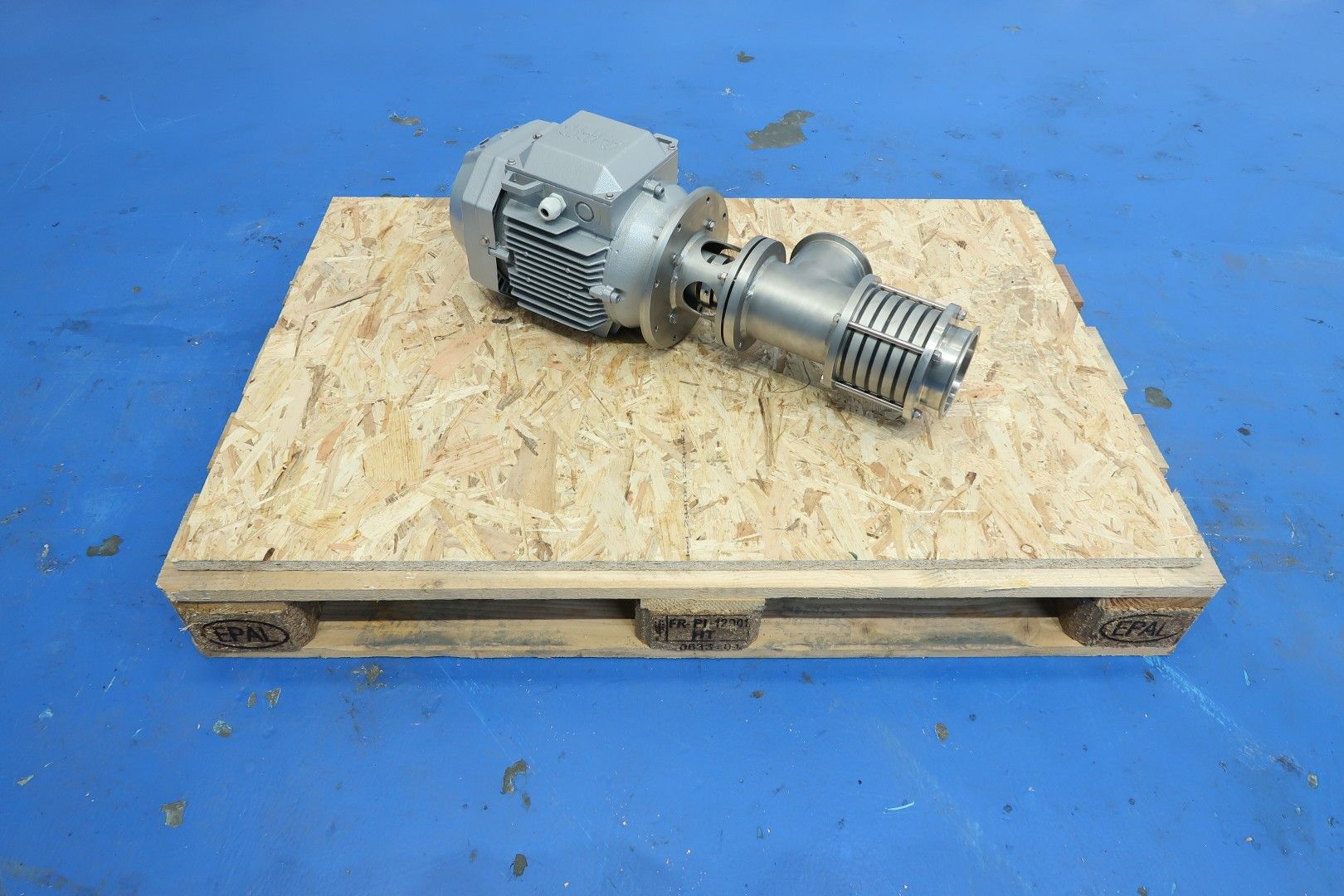 Inline mixer, already rebuild for mixing butter and butter blends. Rotor speed: 1.425 rpm, connections: (In) 4" Tryclamp / (Out) 4" TryClamp. Motor power: 5,5 kW - 11,7 A - 50 Hz - 1.4255 rpm. Testmovie available. Dimensions: 72x22x26 (lxwxh) cm - weight: 89 kg.