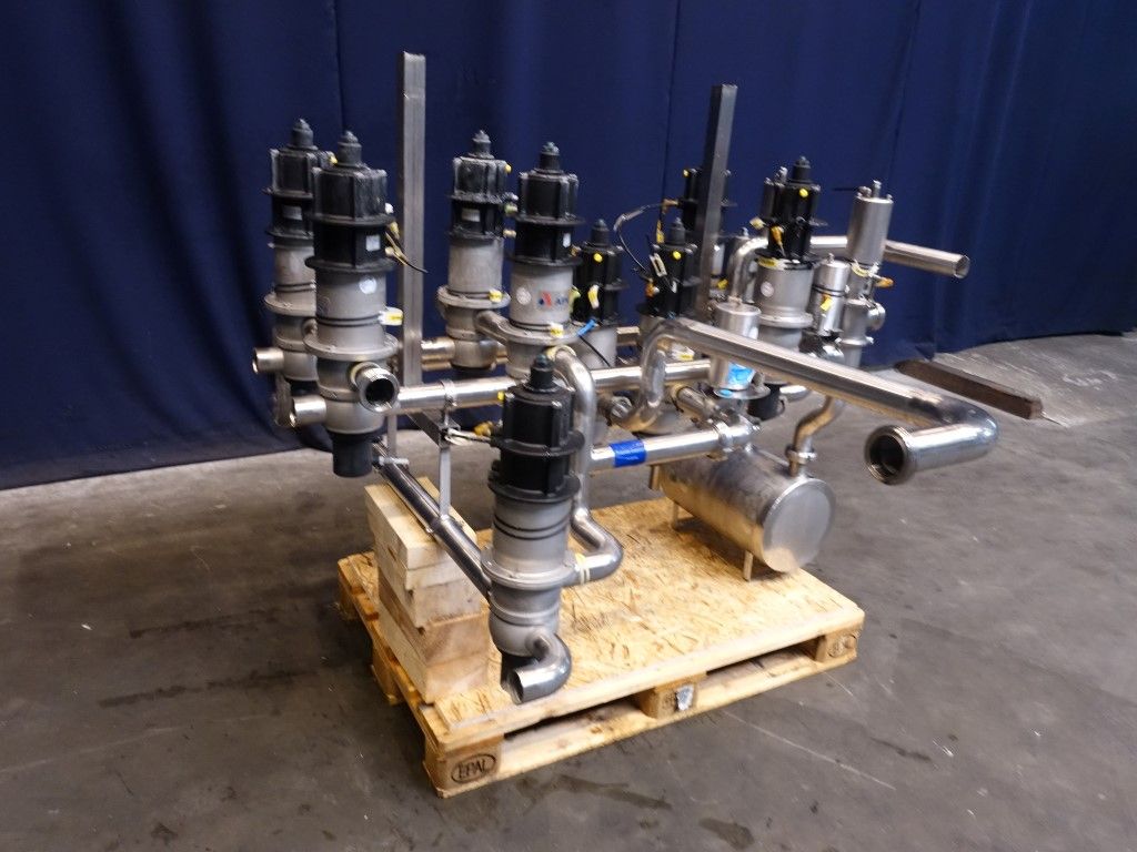 6 x DA34 2'' - 4 way mixproof double seat valves. 4 x DA34 2'' - 3 way mixproof double seat valves. 2 x Alfa Laval 3 way SRC valves.