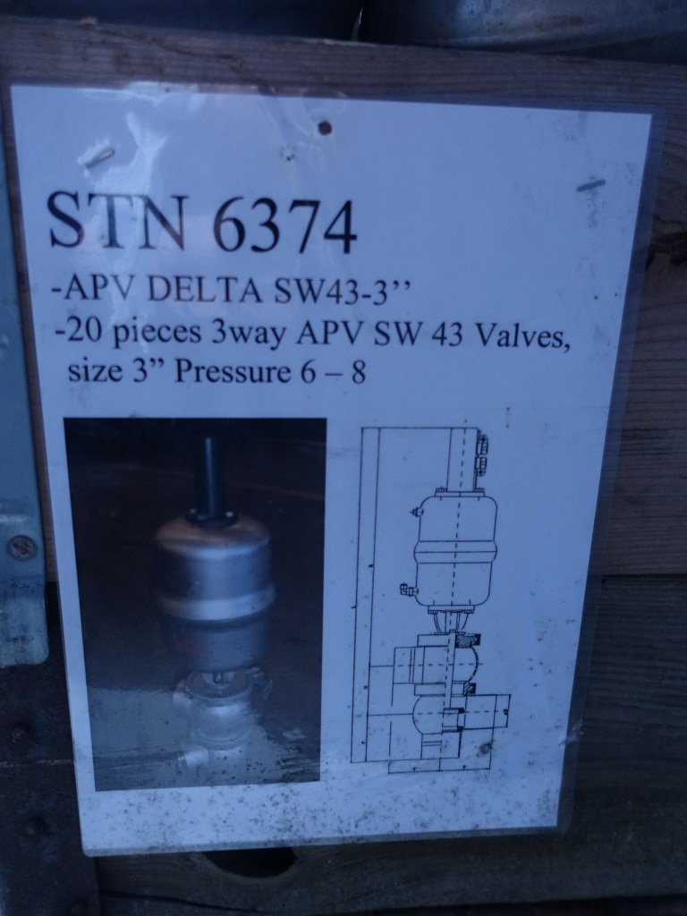 20 pieces 3-way APV SW43 valves. Size: 3". Pressure 6-8 bar.