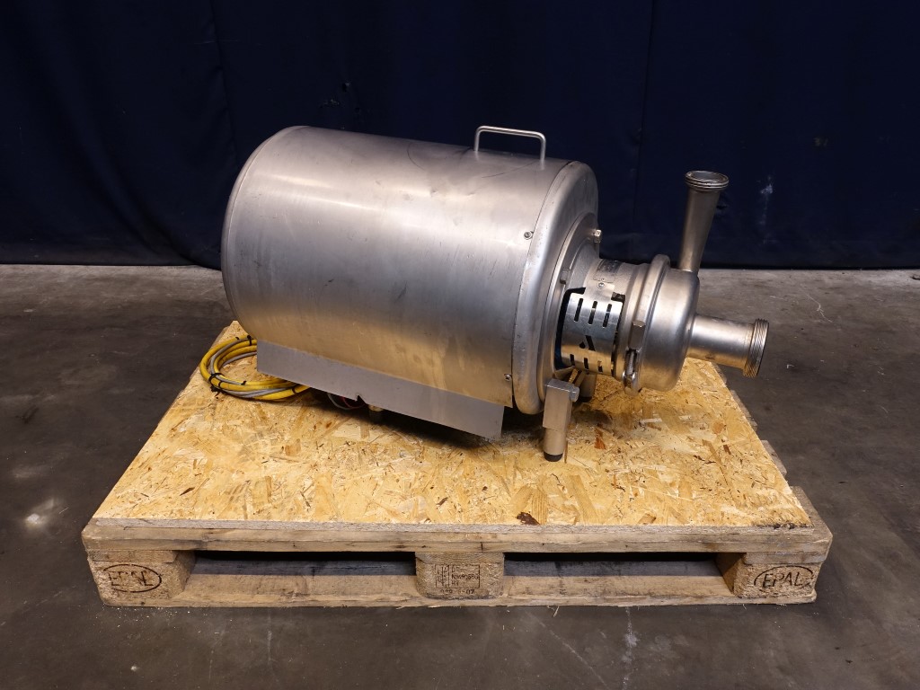 Sanitary centrifugal pump. Current motor: 11 kW - 20 A - 2930 rpm. Impellor diameter: 175 mm. Connections: DN65 / DN50, SMS.