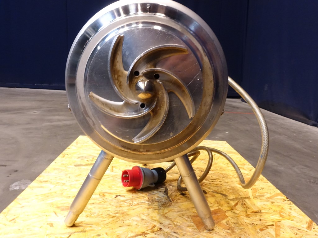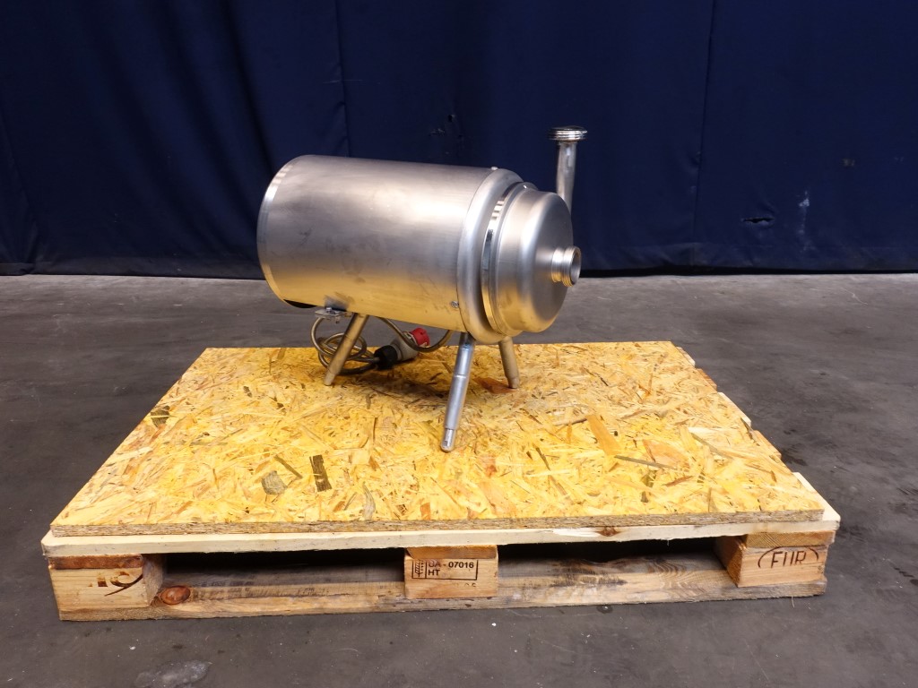 Sanitary centrifugal pump. Motor details unknown, no typeshield. Impellor diameter: 160 mm. Connections: DN50 / DN40, SMS.