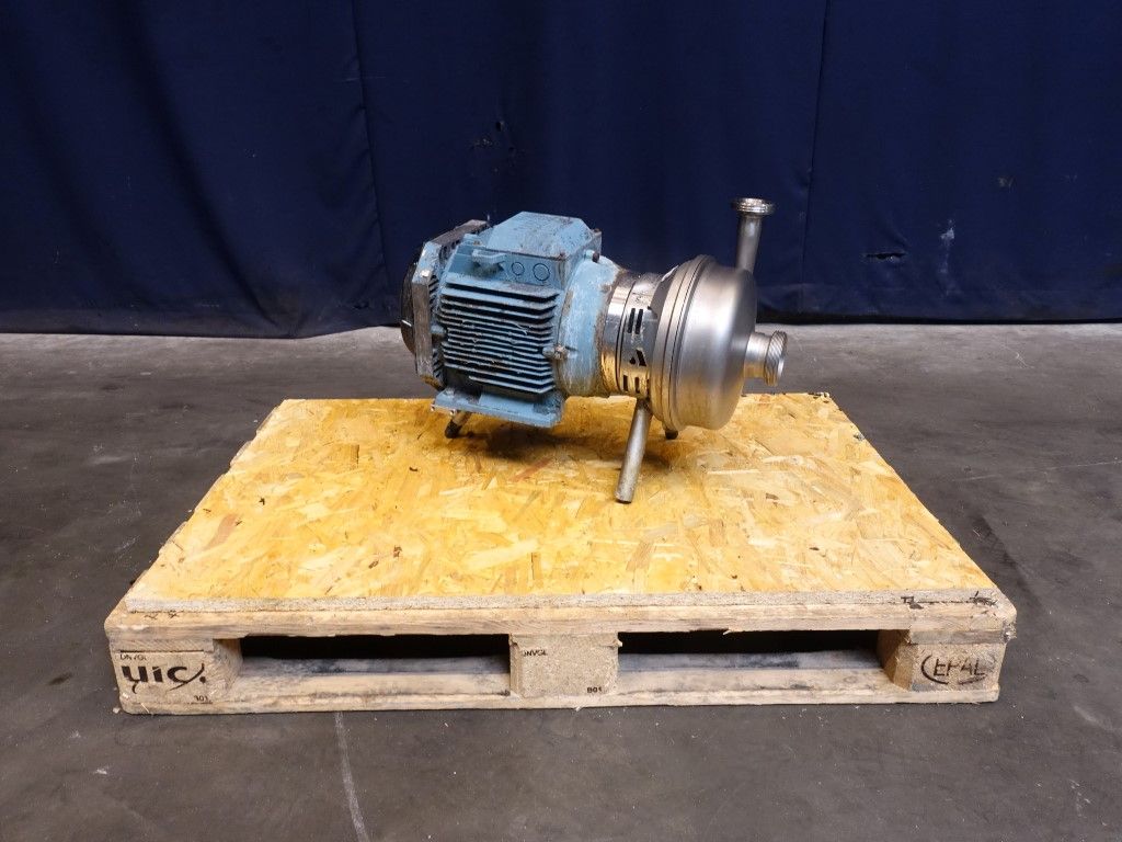 Sanitary centrifugal pump. Current motor: 5,5 kW - 6,3 A - 2855 rpm. Impellor diameter: 185 mm. Connections: 2,5'' / 2'', SMS.