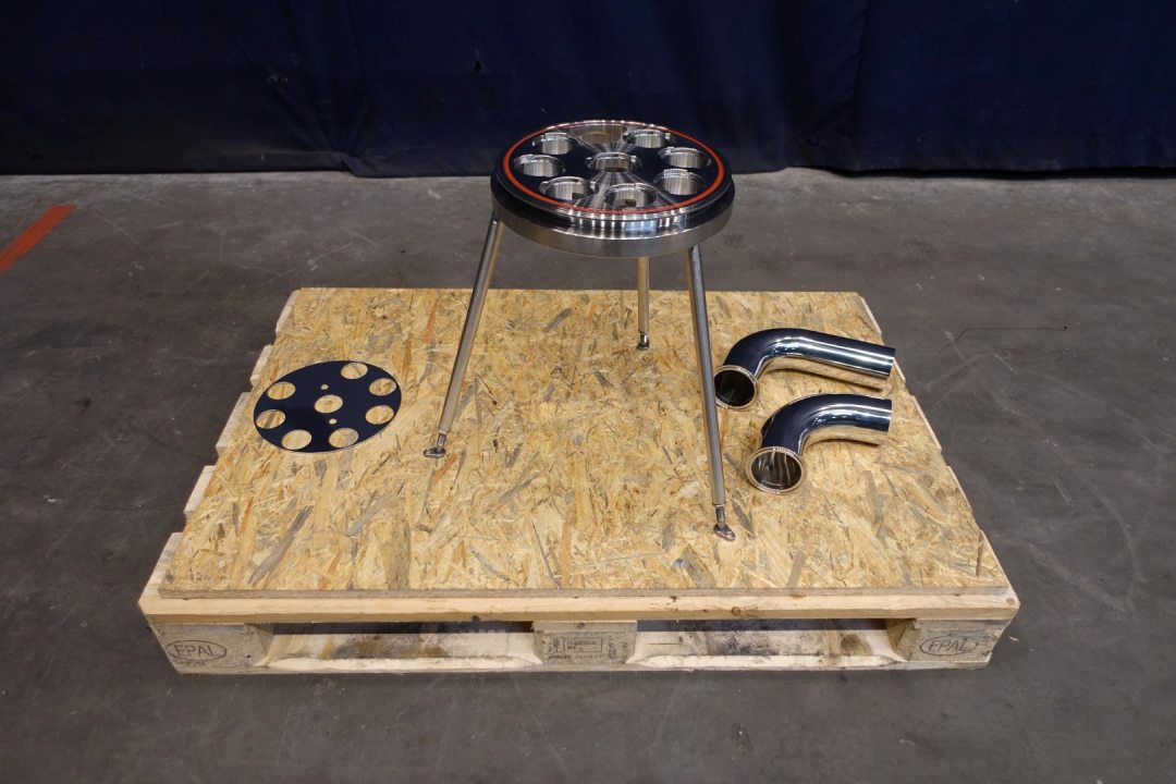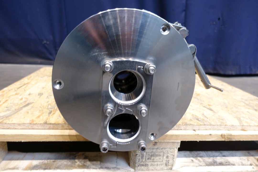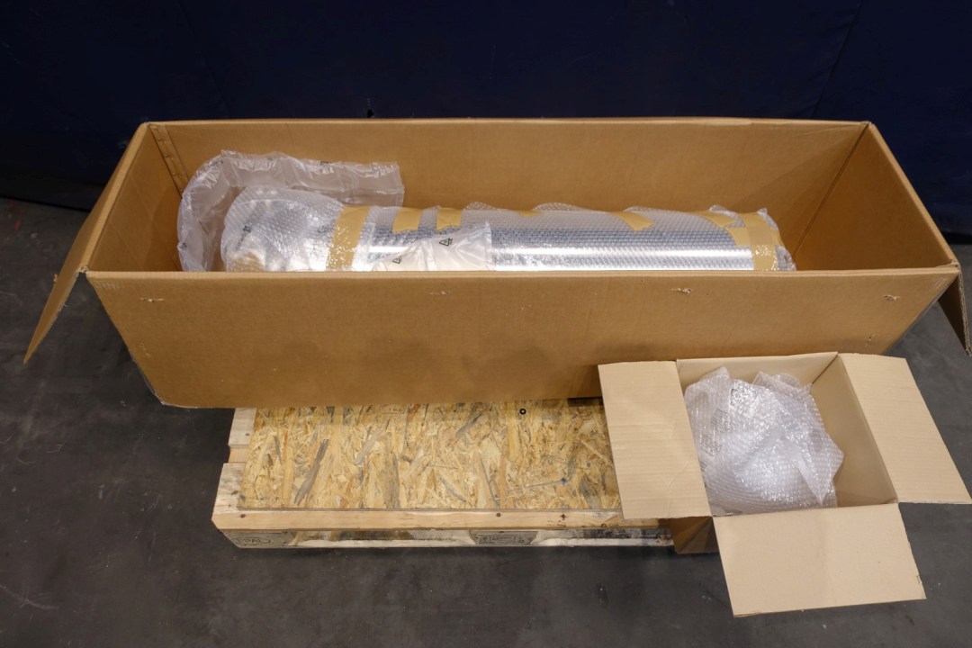 Vertical filter housing, unused, in original packaging. Including insert with a diameter of 56,22 mm. Diameter on top 270 mm. Length filter house 133 cm. Sanitairy for liquids. Volume: 63,9 Ltr. Connections 1x 1,5" Try clamp. Only housing, excluding filters. Dimensions: 50x50x160 (lxwxh) cm - weight 75 kg.