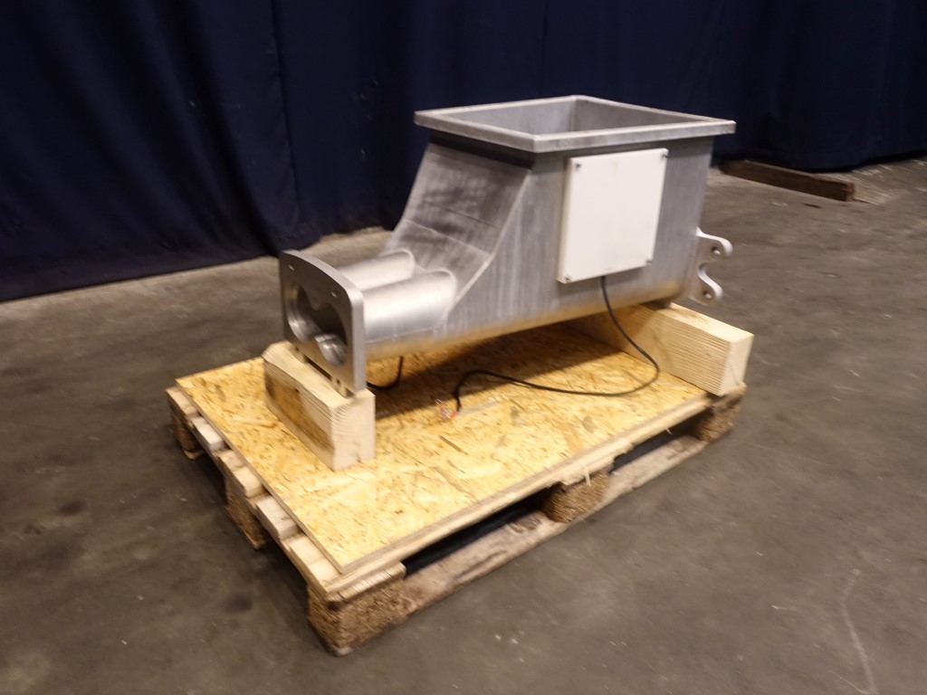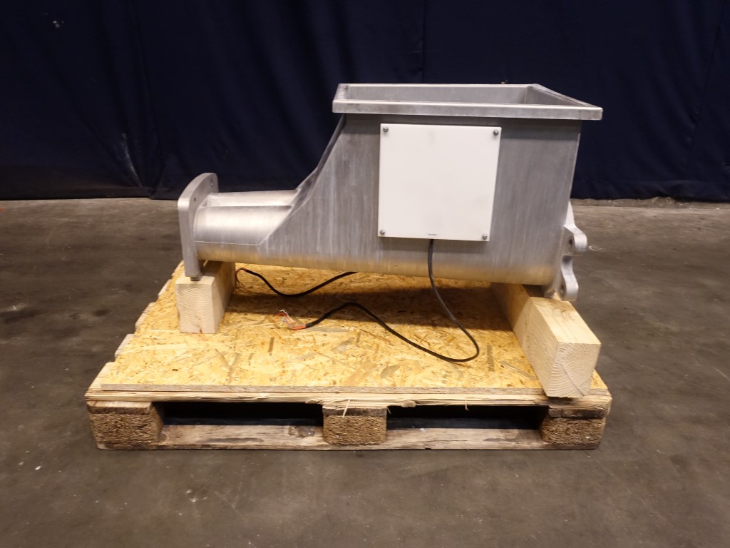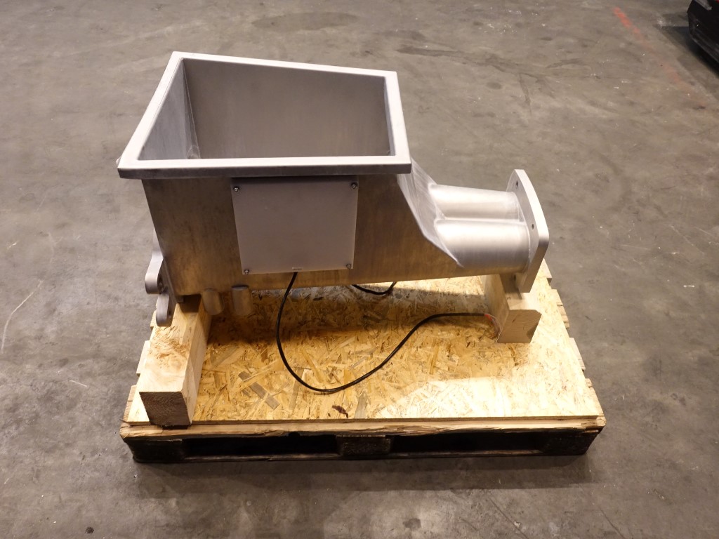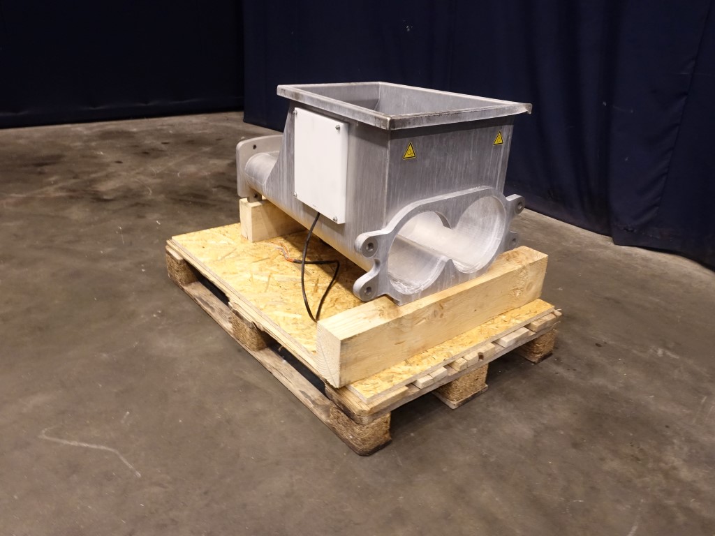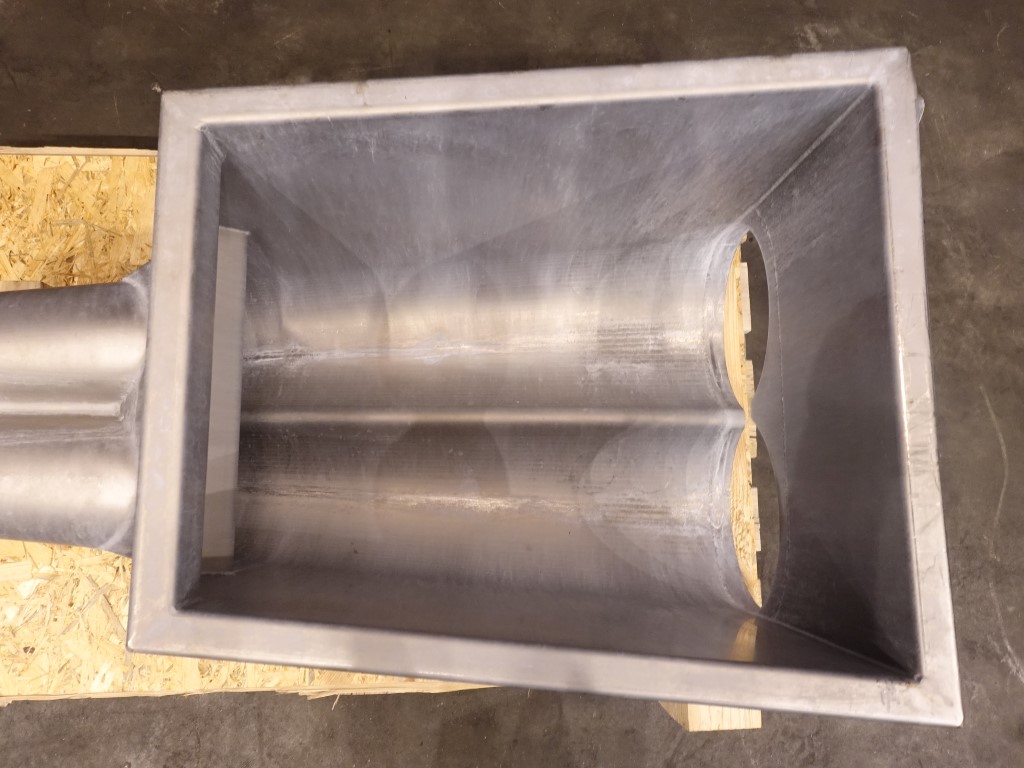 Stainless steel through for Benhil butter filling machine, model: 8311 - 8380 or 8382. Including heating elements on each side for antistick. Excluding augers (can be offered on request). Total dimensions: 95 x 50 x 65 cm.
