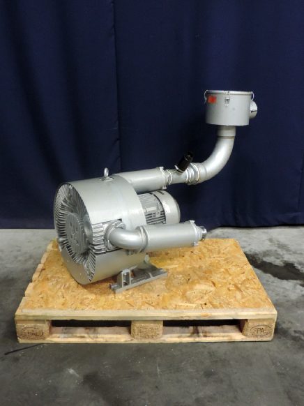 Sidechanel Blower Motor: 7,5 kW - 50 Hz - 380 V - 16,7 A. Pressure -400 up to 400 mbar. With filter in inlet. Can be used both to create overpressure or vacuum. Maintenance free.