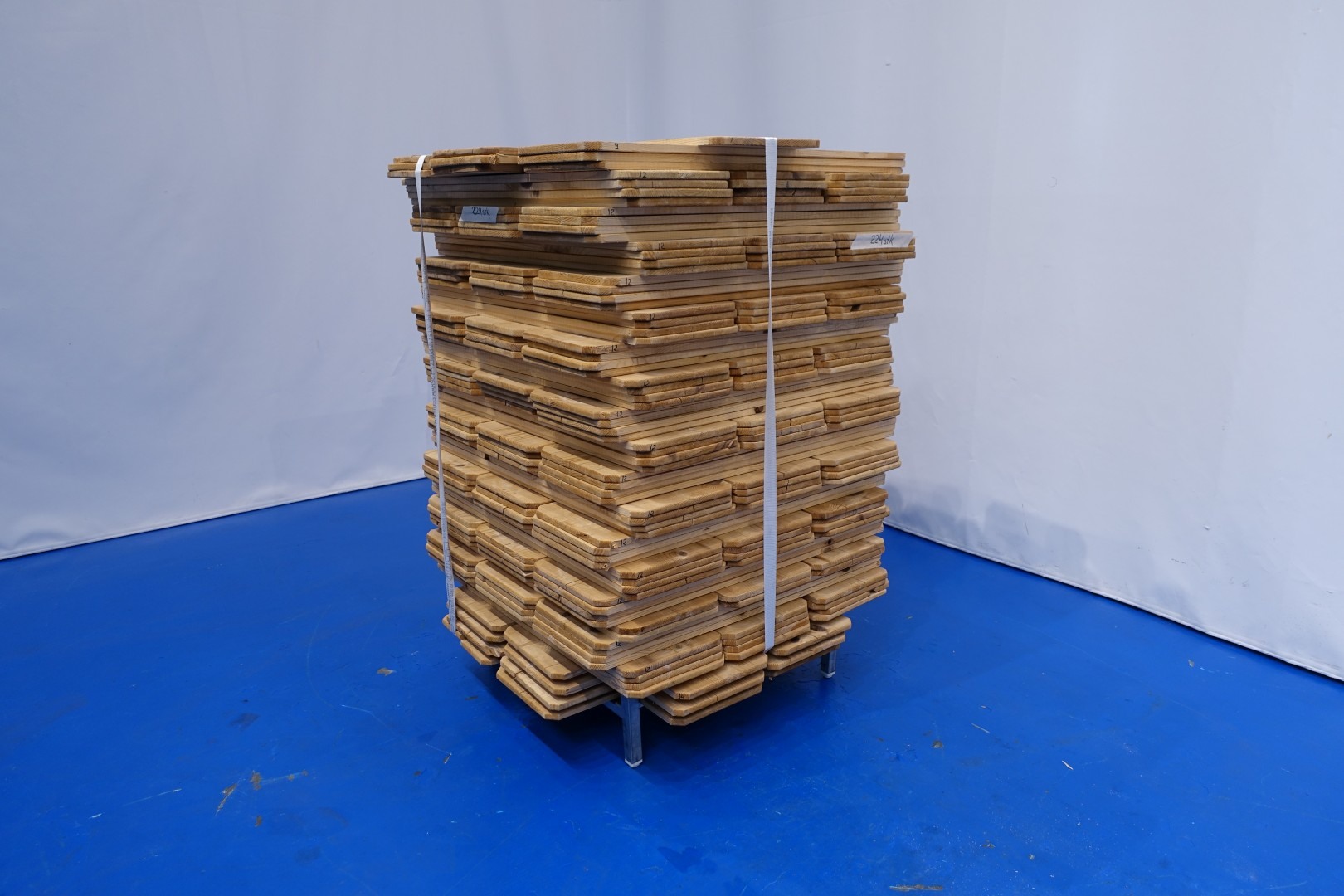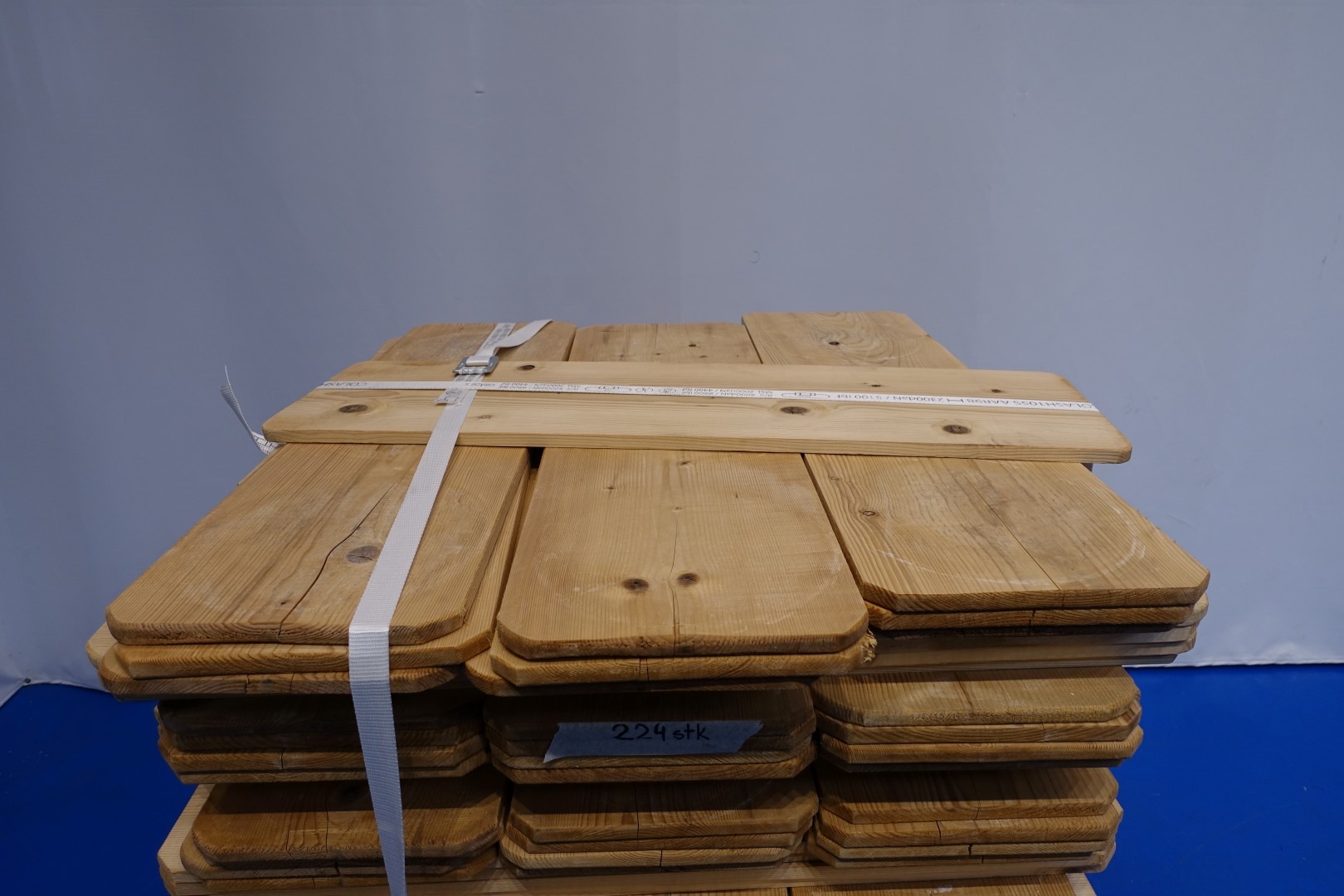 Wooden cheese storage shelves, for maturing room total 2,200 pieces stored in 14 pallets/frames. Dimensions per shelve: 1050 x 315 x 18 mm. Also racking system available under our stock nr STN15799