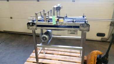 Chain link conveyor belt with engine.