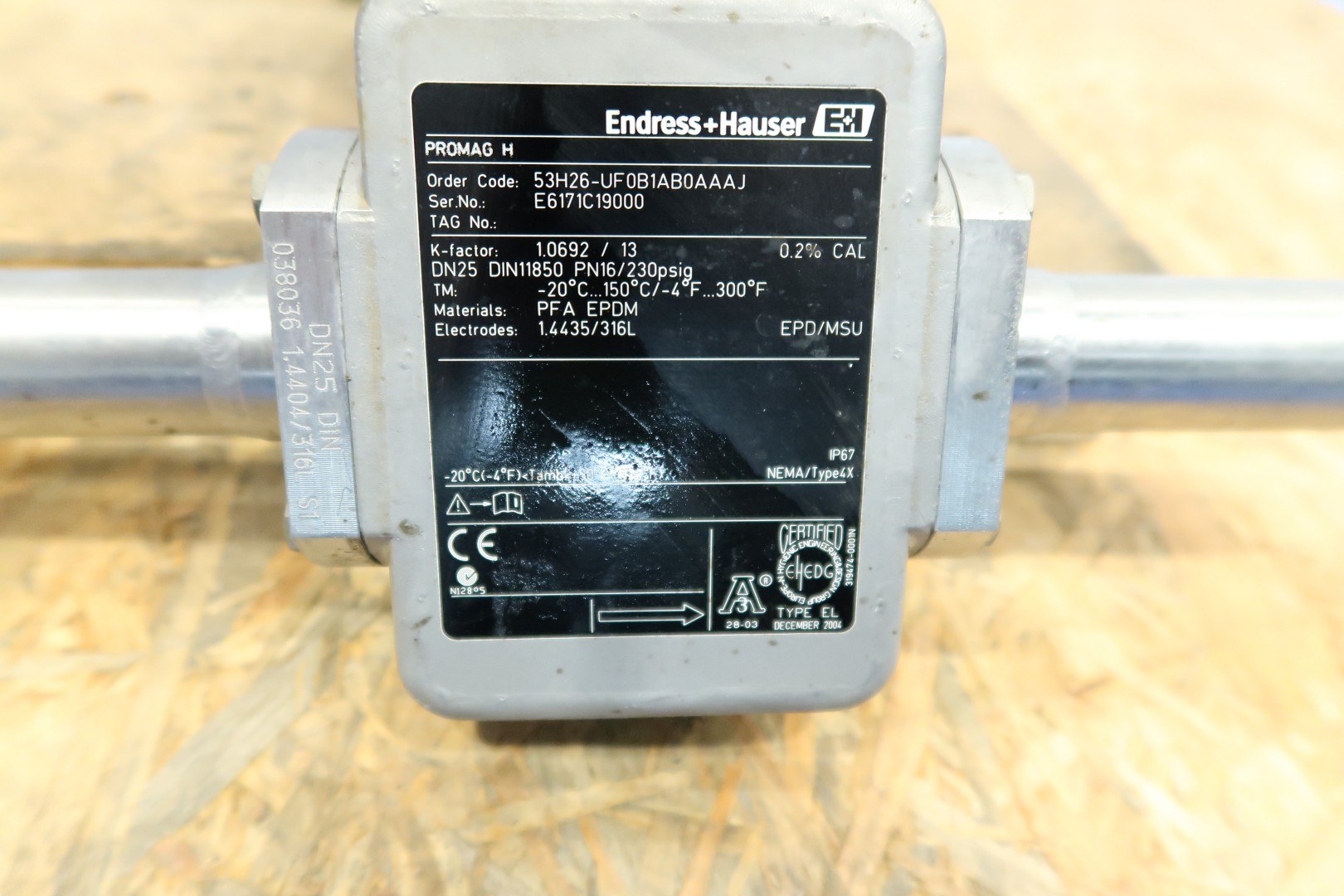 Magnetic flow transmitter complete SS. Capacity Promag H (DN25) 540 (min) - 18.000 (max) ltr/h. Connections: (in) DN25 Din / (out) DN25 Din. Electronic head -display. Order code: 53H26-UF0B1AB0AAAJ.