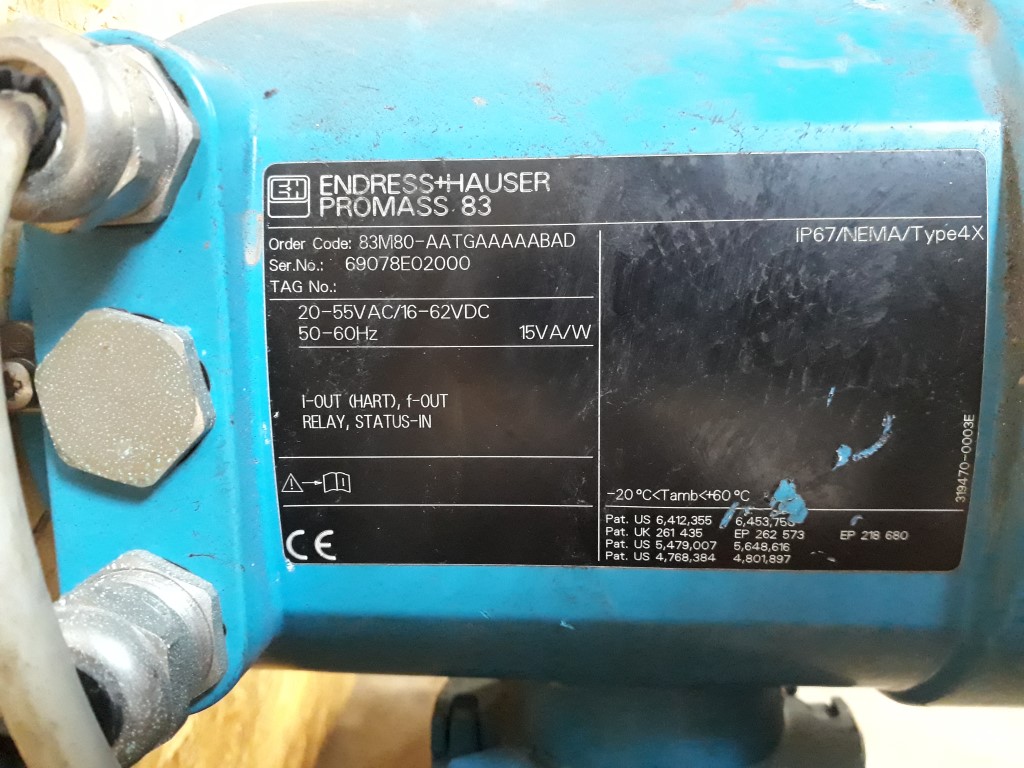Mass Flow Measuring System (transmitter and sensor) for measuring the mass and volume flow of fluids having widely different characteristics such as condensed milk, oils and fats, acids, chocolate, syrups etc. Connections: 3''. Electronic display. 3'' Tricalmp pnorm = PS = 16 bar. TM: 150 °C. 100 bar Container. Materials: Titan EPDM. IP67.