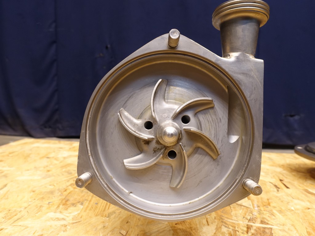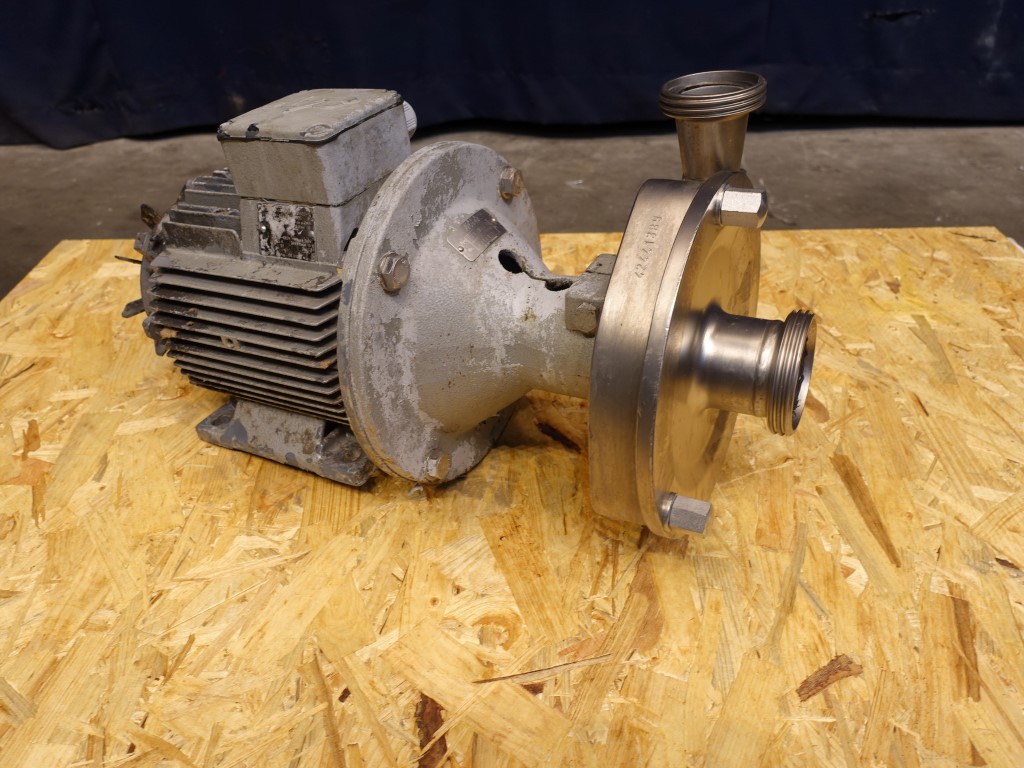 Sanitary centrifugal pump. motor: 3,0 kW - 2810 rpm (expected, typeshield not readable). Impellor diameter: 130 mm. Connections: 2'' / 1,5'', DIN.
