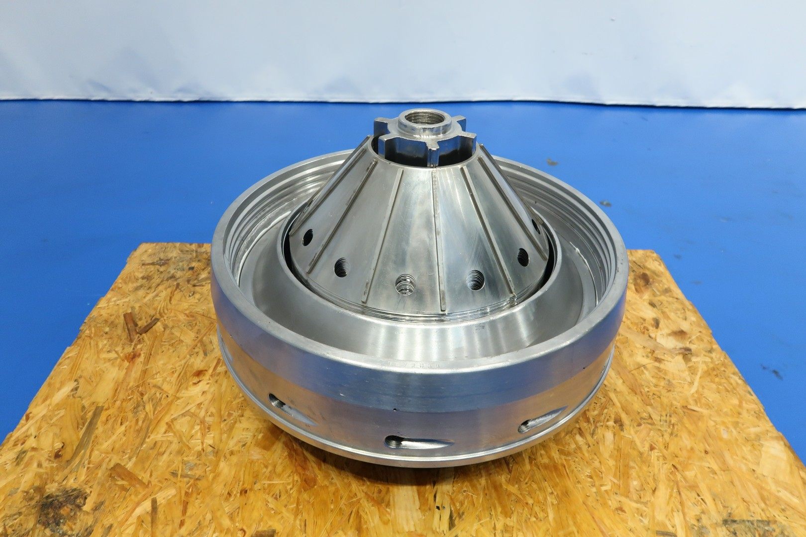 Quark separator KDA30 parts: Bowl (with 12x nozzels 0,7 mm) and CIP insert piece, bowl nr:1672039 disks partly dammaged. drive framework and housing of a incomplete Water cooled motor 25 kW - 47,5 A. (no cupper windings) for parts only. Dimensions ca.: 150x110x135 (lxwxh) cm - weight: 800+322 = 1.122 kg.