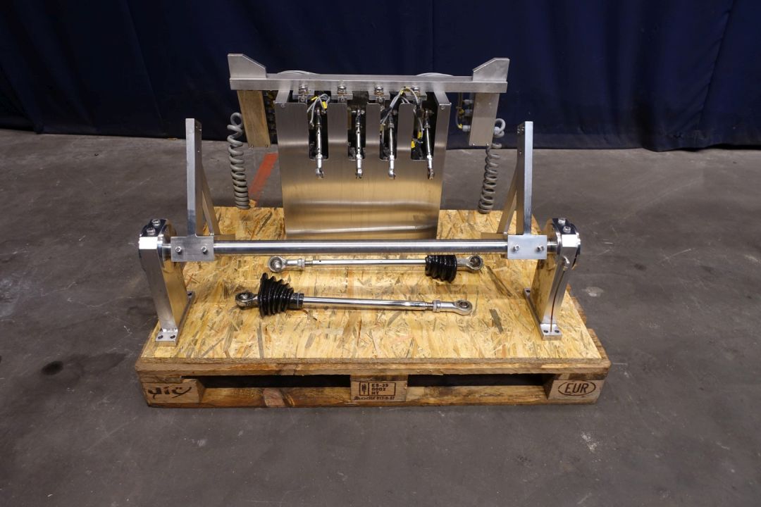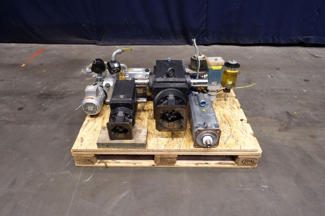 Piston doser 200-500ml, CIP cleanable 4 heads with servo drive motors brand Elau model: SM100 and SM140 drives model: MC-4, each piston as has a drive motor to adapt the volume automatically during running (servo) Previously used for salades or other viscose products. complete with the drive motor to easy mount on a Filling machine. with compensator cylinder for constant infeed pressure , cut of valve, dosing head. counter pieces for CIP.