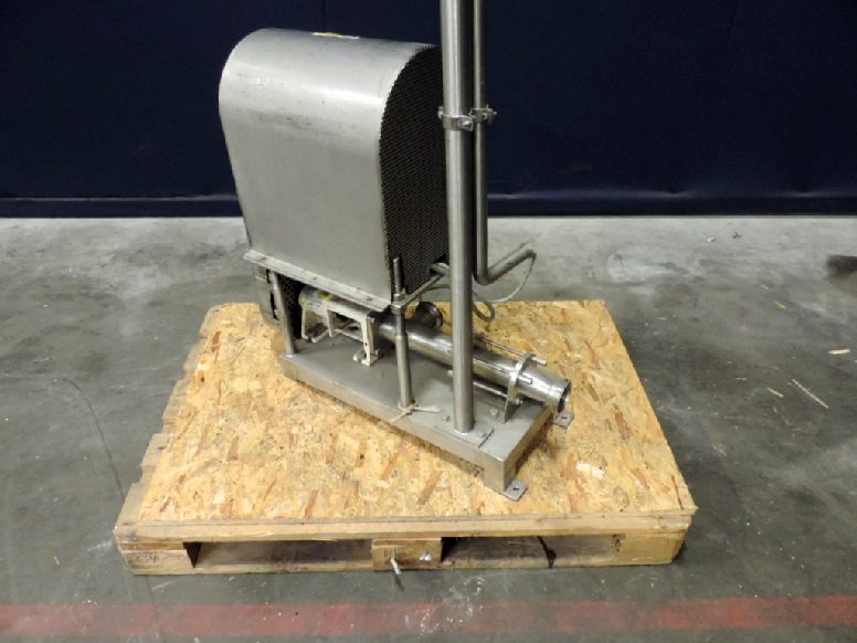 Used as cream pump. Stator diameter 50 mm. Stator length: 450 mm. 1 Winding. Connections: DN50/DN50. Stainless steel cover over electric motor. Frame mounted.