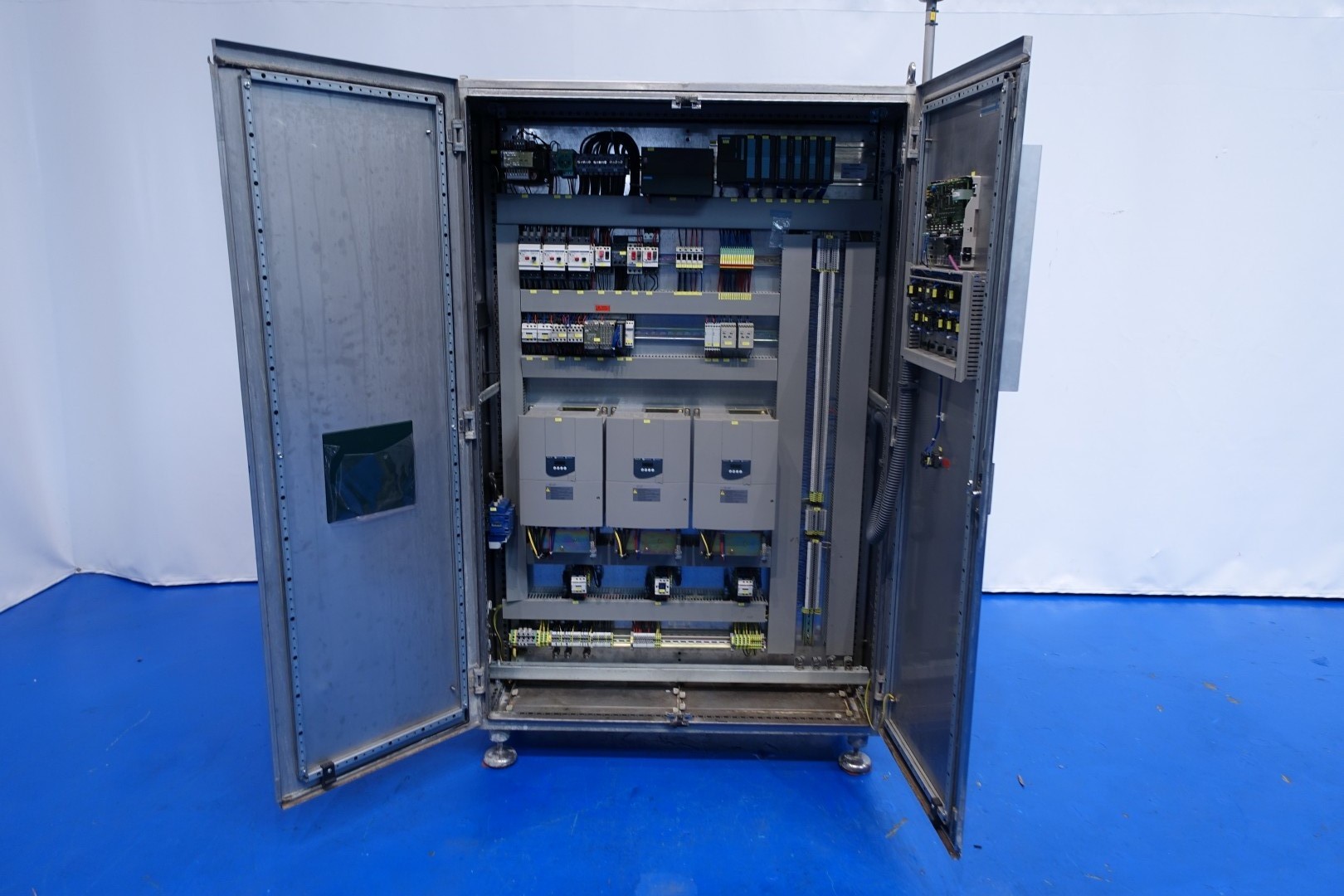 Vacuum Cooker melter, Ribbon Blender, horizontal. Double jacketed for indirect heating or cooling and Direct heating by steam injection, 6 x steam injection ports. Max pressure in jacket 2bar water or steam max 3,5 bar, CIP cleanable by 4 x spray bowls. 2 x Motor for ribbons 2x11kw motor. 1 Outlet hatche pneumatic openable. With vacuum system, Water dosing system with flowtransmitter . Closed cover, pneumatic liftable. Ingredient inlets: manual via bins. integrated liquid ring vacuum pump. Separate elevator, lifting bin arm for standard 200ltr trolleys (KS type 602, 1,1kW - max 250 kg). Control panel with PLC (Siemens S7-300 controls), Freq converters. Display operation panel. Dimensions product room: 100x100x82 (lxwxh) cm. Documentation available. Total dimensions 210x190x323 cm.