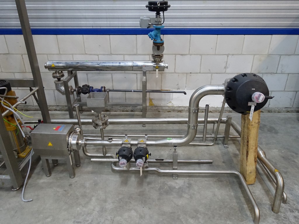 Sterile steam generator, skid mounted. With Tubular heatexchanger: Tube side: 8,5 bar / 0-180°C - 63 liter. Shell side: 8,5 bar / 0-180°C - 73 liter, including valves, control unit, piping. To make sterile steam out of normal steam by an heatexchanger / indirect system. The unit does not make steam. Capacity is estimated.