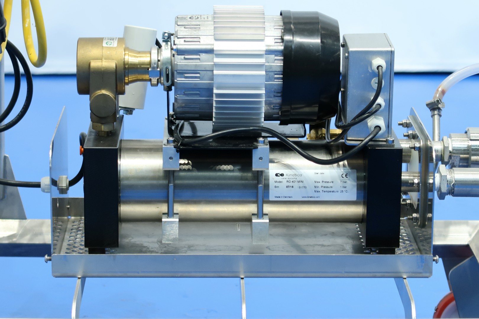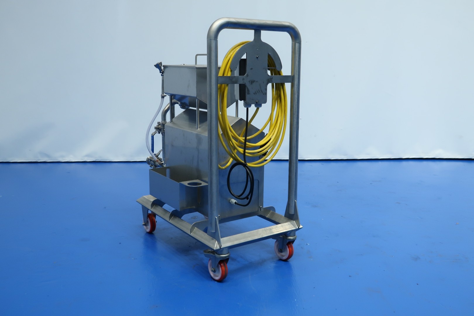 Laboratorium osmose waterpump unit on mobile SS frame. Pure demineralised water for final rinse phase to prevent risk of breakagees and transmission of bacteria. Max pressure: 7 bar - min pressure: 1 bar. Max temperature: 25 °C. Documentation available. Total dimensions: 75x45x100 (lxwxh) cm - weight: 65 kg.