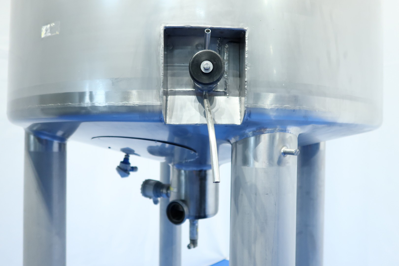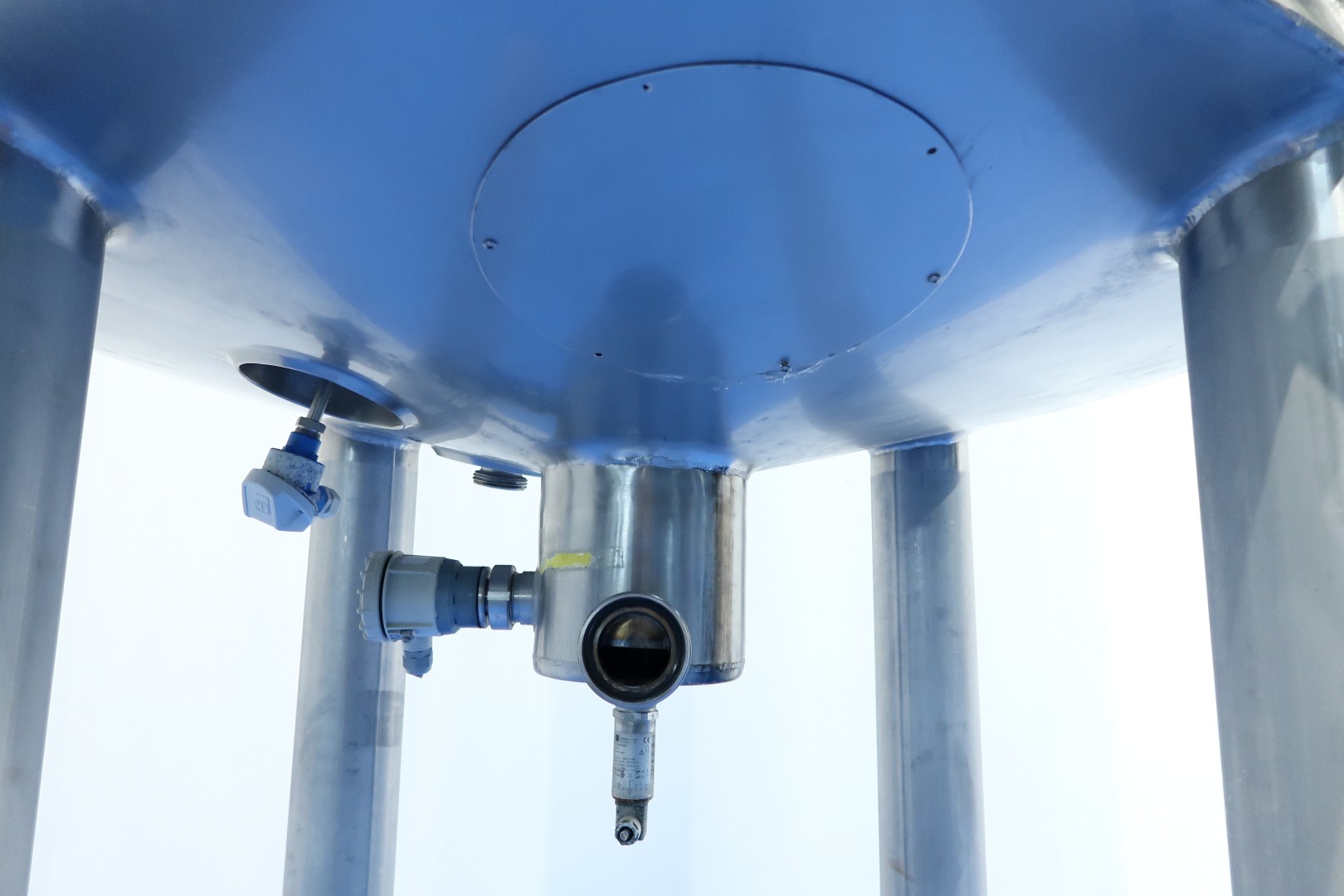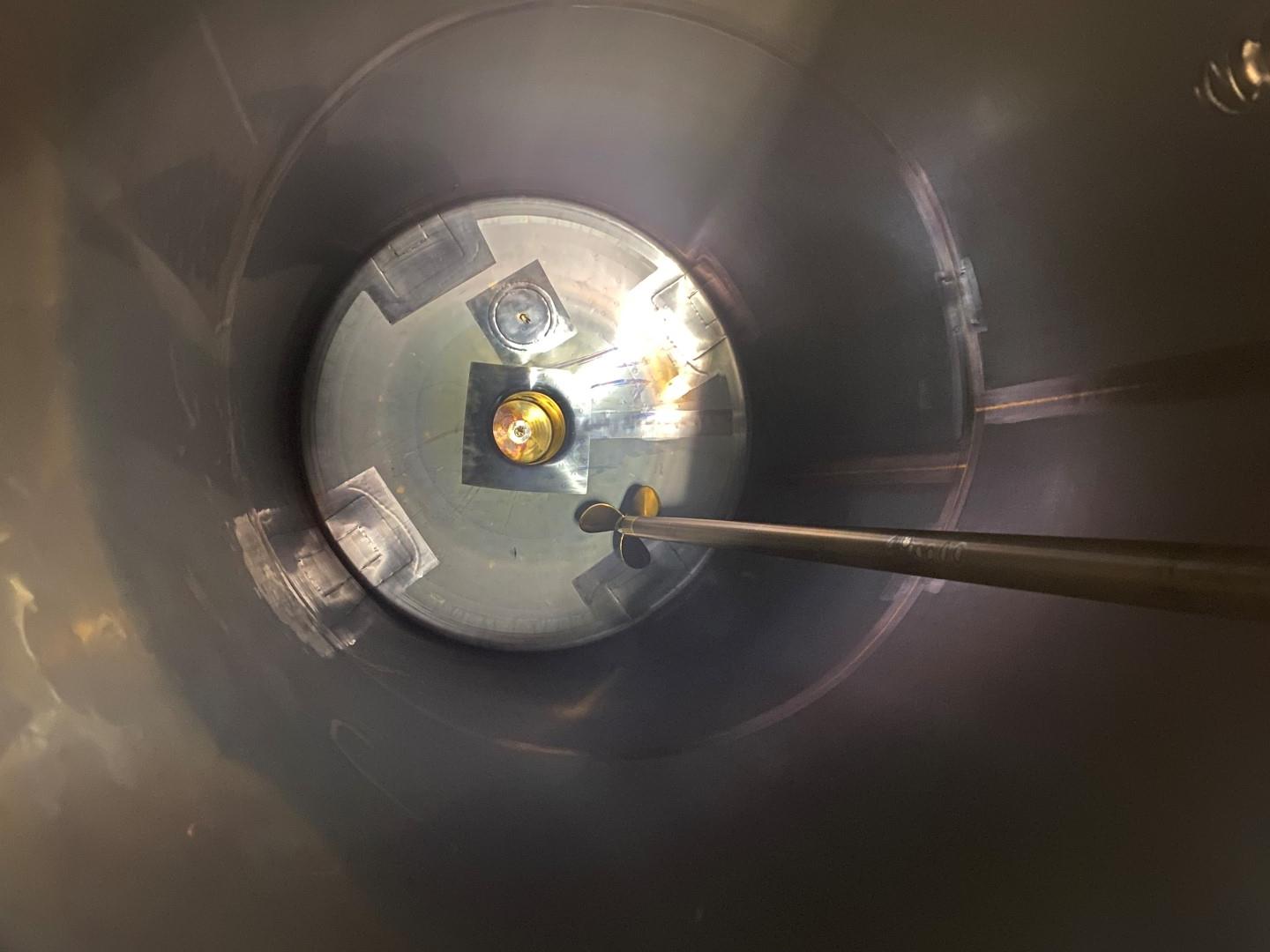 Double jacketed and insulated vertical mixtank. Previously used for cooling and mixing cream. Top driven Jongia JDR propellor agitator, 0,21 KW - n 230 rpm. Jacket: test pressure 10 bar, insulated side and bottom, pressure in tank atmospherique. Product Outlet 1 x 3" Din (no valve). Outlet height: 147cm. With cleanable sample valve. In bottom 3 x sensor: temperature, pressure and level. In top levelsensor and safety sensor on manhole-lid. With breather, sightglass with lamp 1 cip spray bowl, manhole in top round diameter 43 cm. 4 Adjustable feet, innner dimensions of tank diameter 120 cm - cylindrical height 220 cm. Documentation including drawings available. Outer dimensions: 130x130x465 (lxwxh) cm - weight: 715 kg.