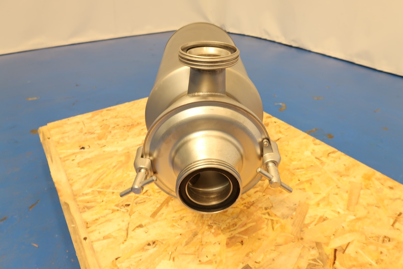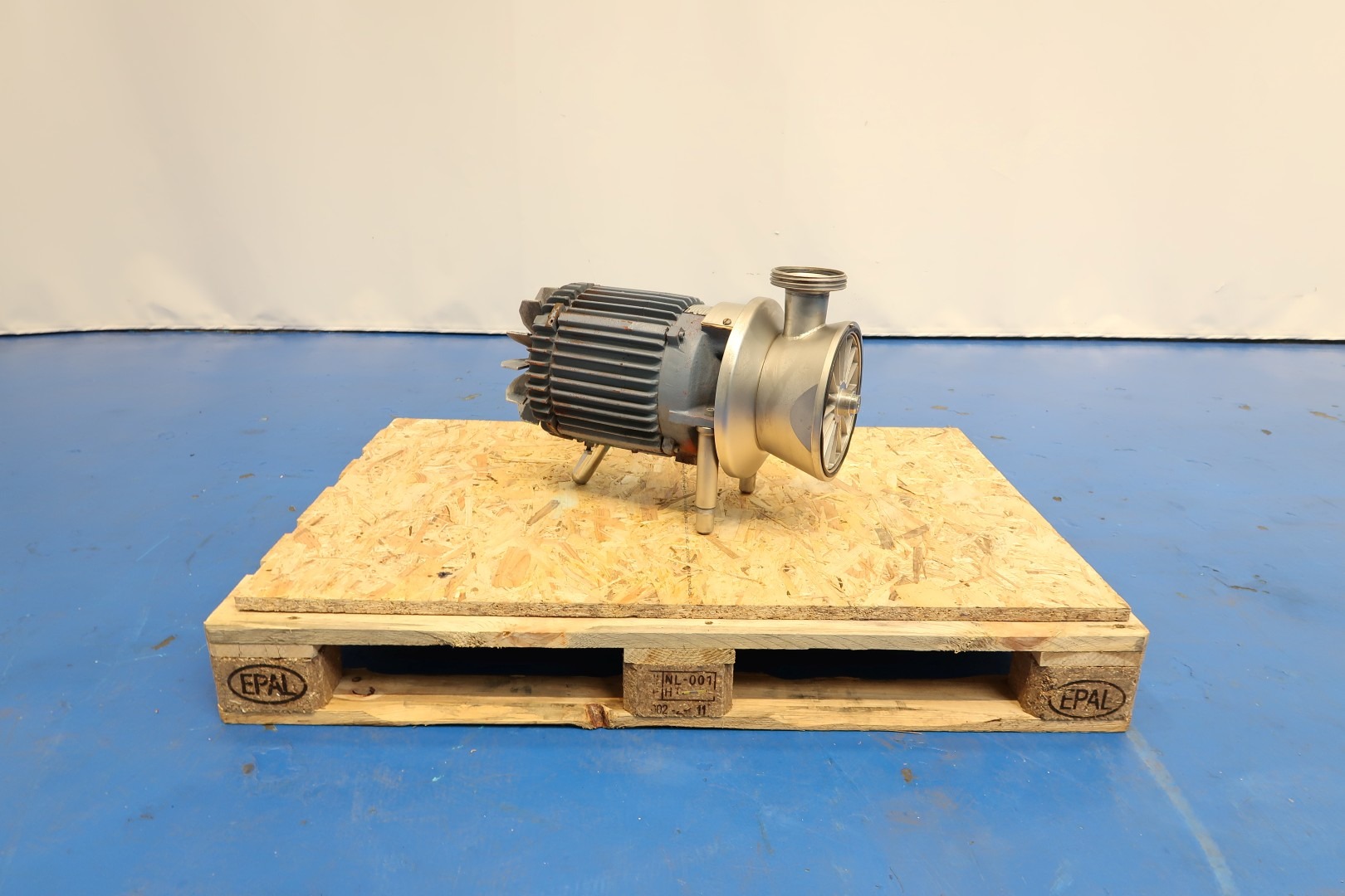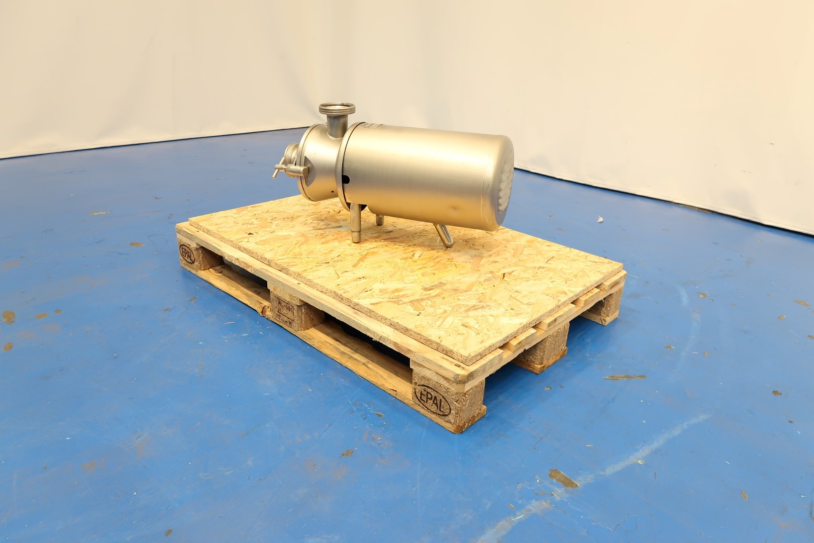 Sanitary centrifugal pump, self suction. motor: 4,0 kW - 8,5 A - 1.430 rpm - 50 Hz. Impellor diameter: 200 mm. Pressure: 0,5 bar. Connections: (in) 3" Din / (out) 3" Din. Total dimensions: 70x26x39 (lxwxh) cm - weight: 116 kg.