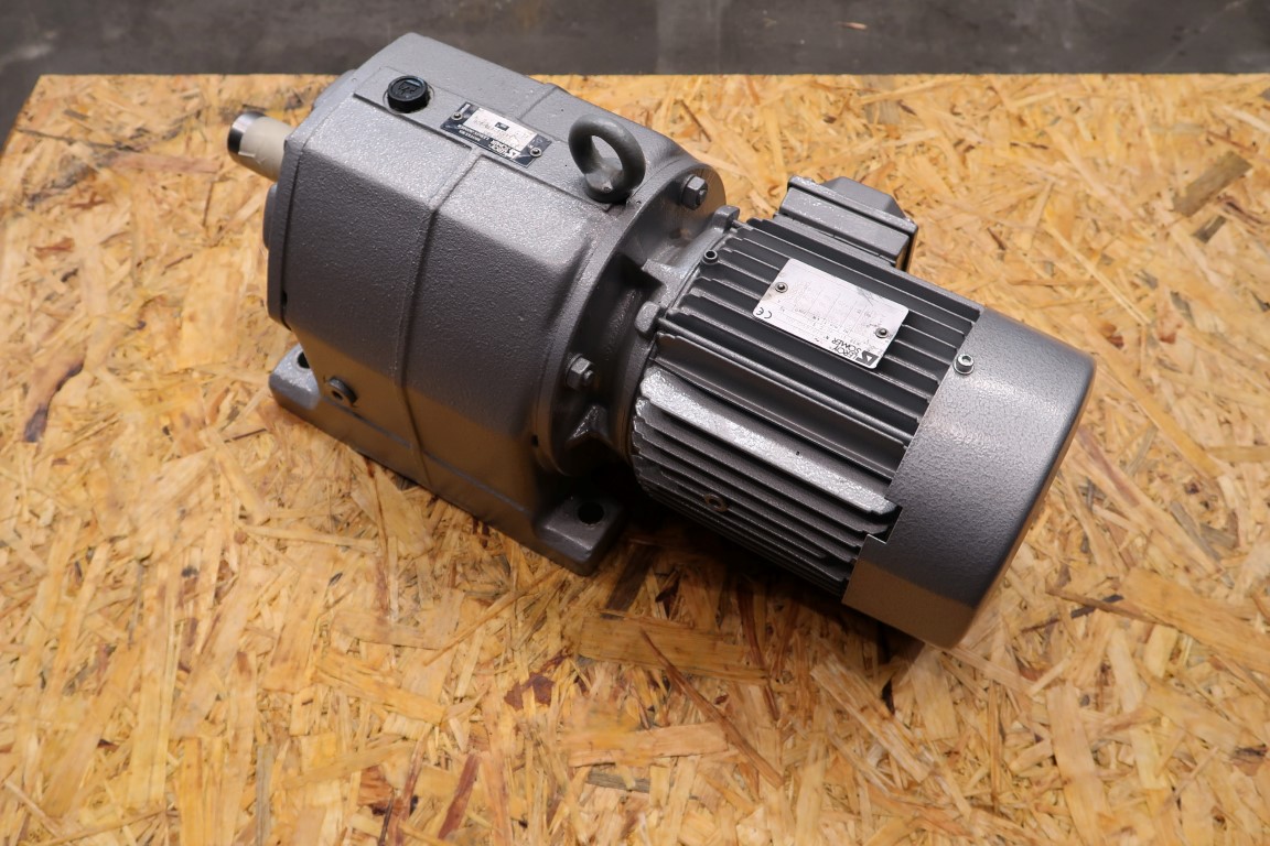 Reconditioned reductor with motor. Motor: 1,5 kW - 1420 rpm - 400 V - 50 Hz. Reductor type CB 2302 SB3, i: 14,5 - n2: 73 rpm. Total dimensions: 58 x 30 x 25 cm.