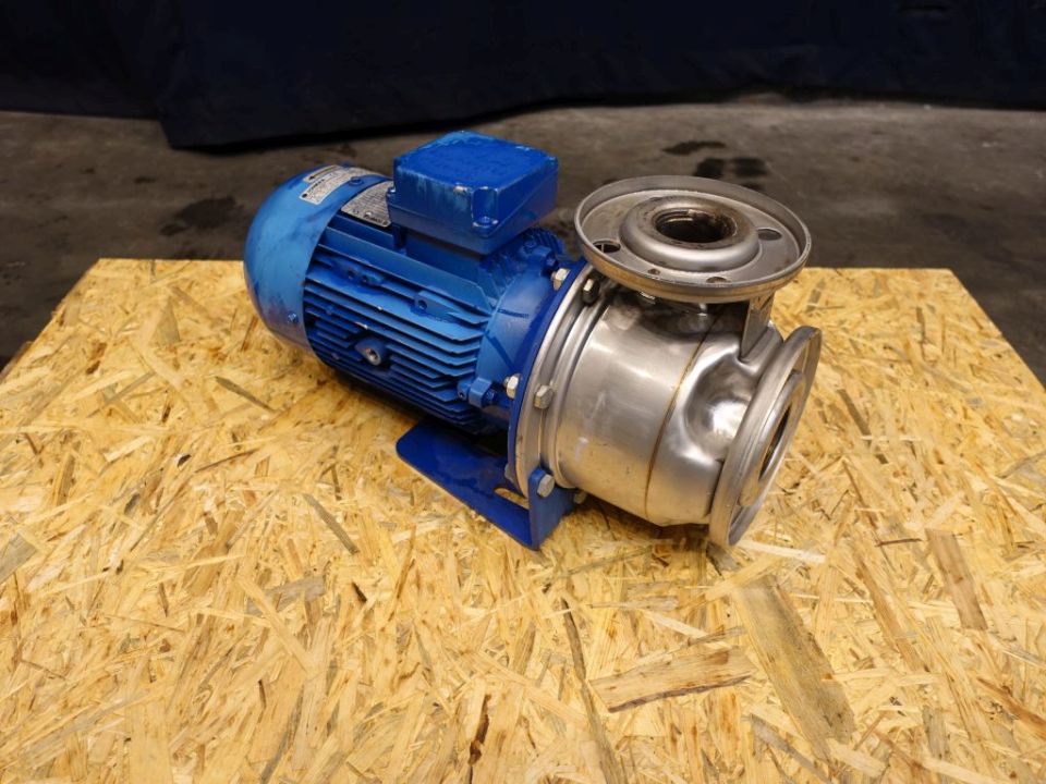 Waterpump. Non sanitary centrifugal pump. Current motor: 4 kW - 8,7 A - 2900 rpm. Stainles steel pump head. Connections: DN80/DN65, flange.