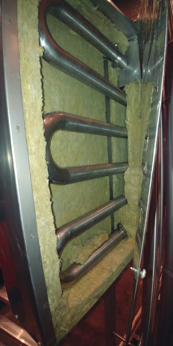 2 sections. Section 1: Pipe diameter 1,5'', total length: 3,7 mtr, Connections 1,5'', SMS. Section 2: Pipe diameter 1,5'', total length: 8,8 mtr, Connections 1,5'', SMS. Mounted in a insulated box. Total dimensions: 250 x 45 x 120 cm.