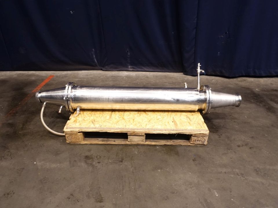 Resting tube for margarine. Double jacketed. Diameter 170 mm and length 1200 mm. Including sieve plate. Connections: DN65/DN100, DIN. Total dimensions: 190 x 30 x 30 cm.