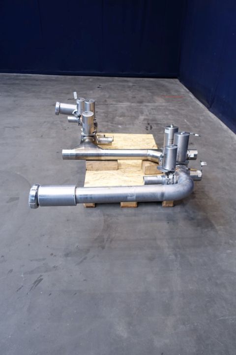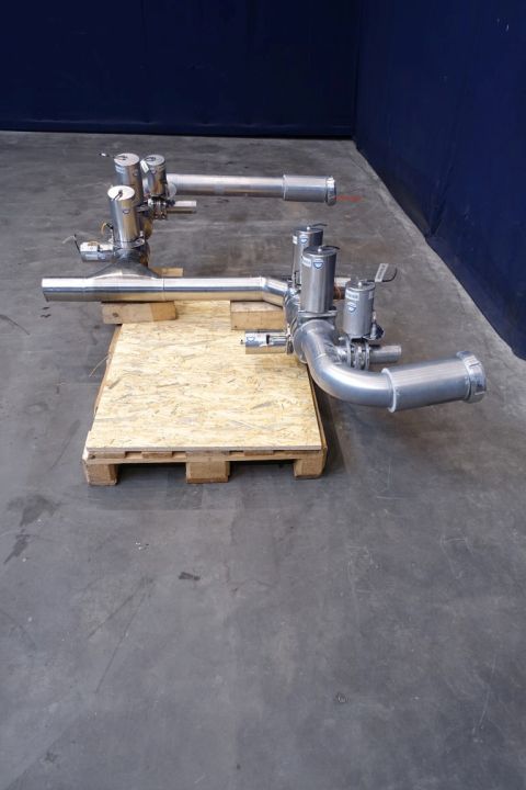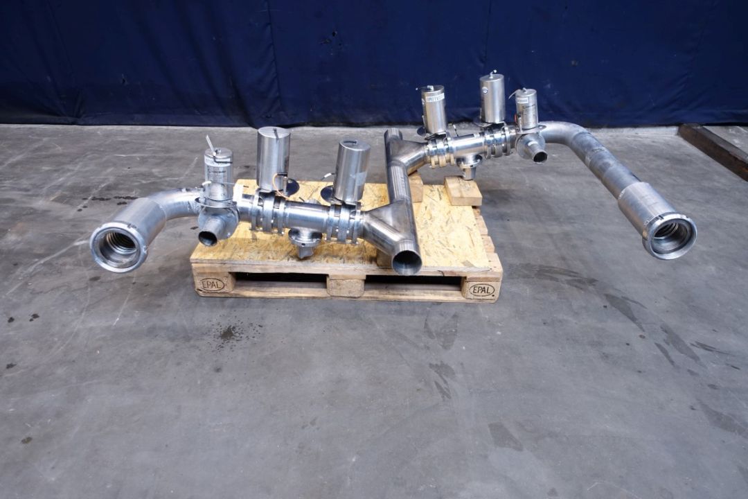 2x Trouser pieces, 100 mm. 8x pneumatic valves, 4x DN100 + 4x DN65. 2x outlets DN100 SMS.