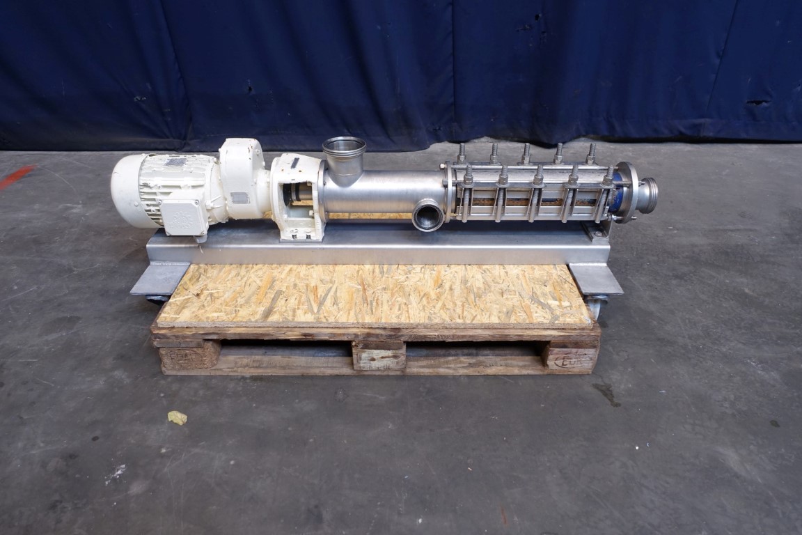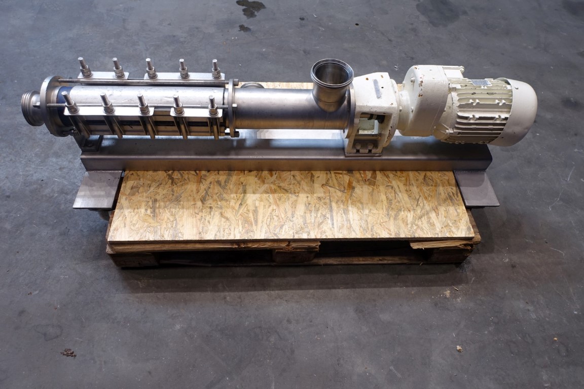 Eccentric screw pump. Stator diameter 55mm. Stator length 550 mm. 4 Windings. Max pressure 10 bar. Current motor: 4 kW - 8,6 A - n1 1,450 rpm - i = 10,34 n2 = 133rpm pump speed.