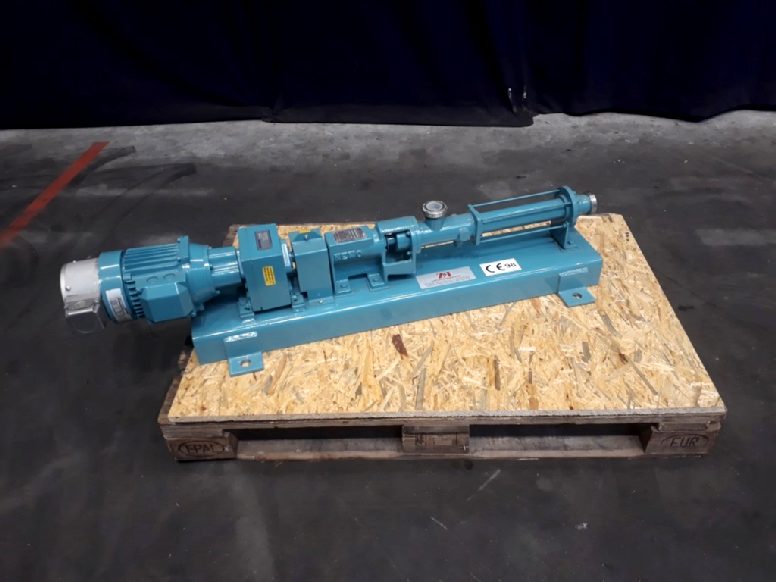 NEMO® beverage pump in universal use, 2 Stages. Pressure: 12 bar. Stator diameter ± 20 mm. Stator length 240 mm. Motor: 0,55 kW - 1,5 A - n1: 1420 rpm - i = 7,17 - n2 = pump speed 198,1 rpm. Frame mounted. Connections: 1,5''/1,5'' SMS.