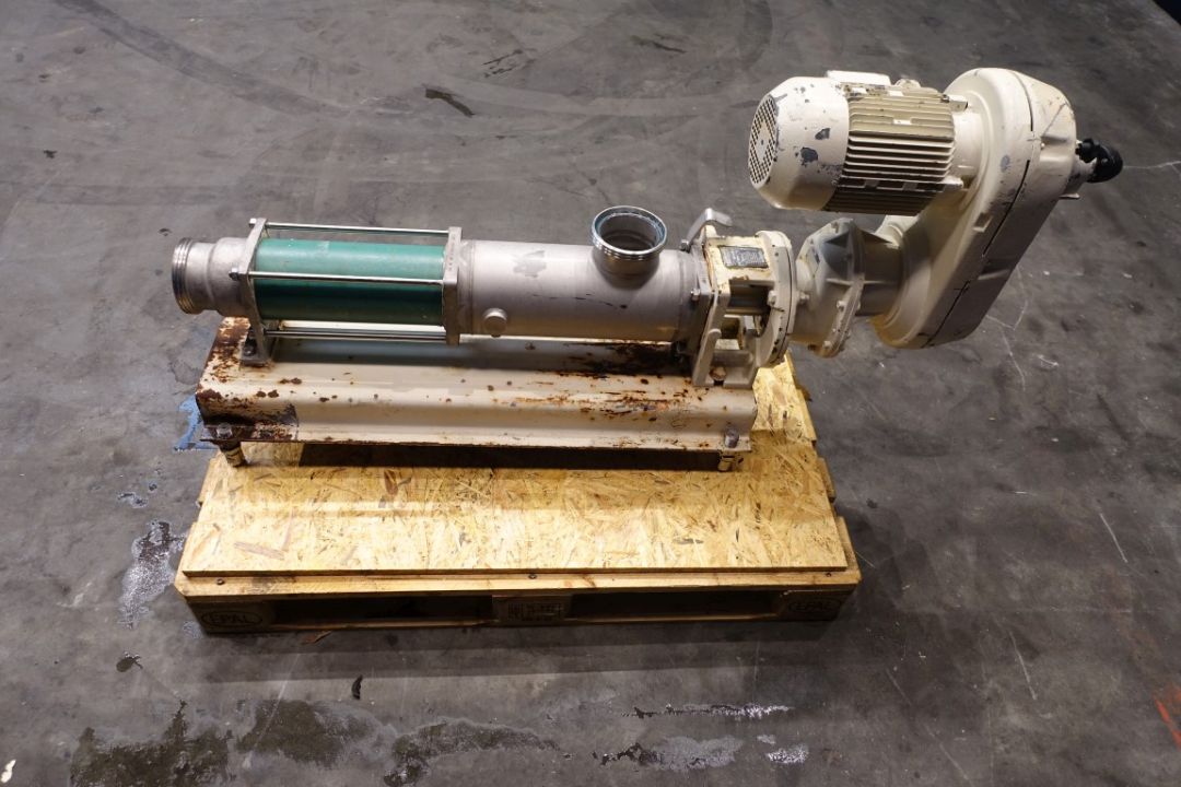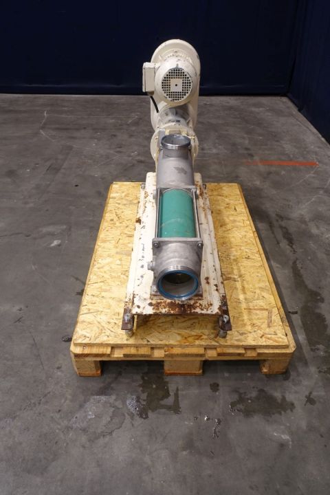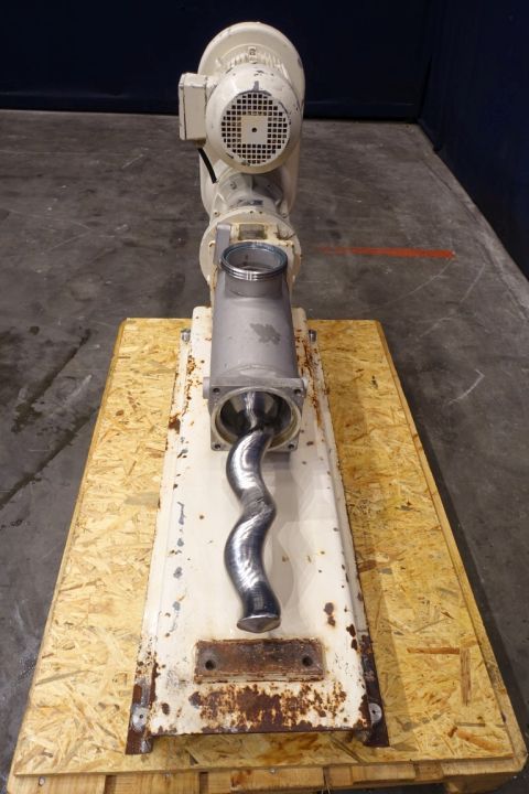 Screw / mono pump. Current motor: 3 kW - n2 = 321-53 mrpm. Mechanical variator. Steel frame mounted. Connections: DN100/DN100
