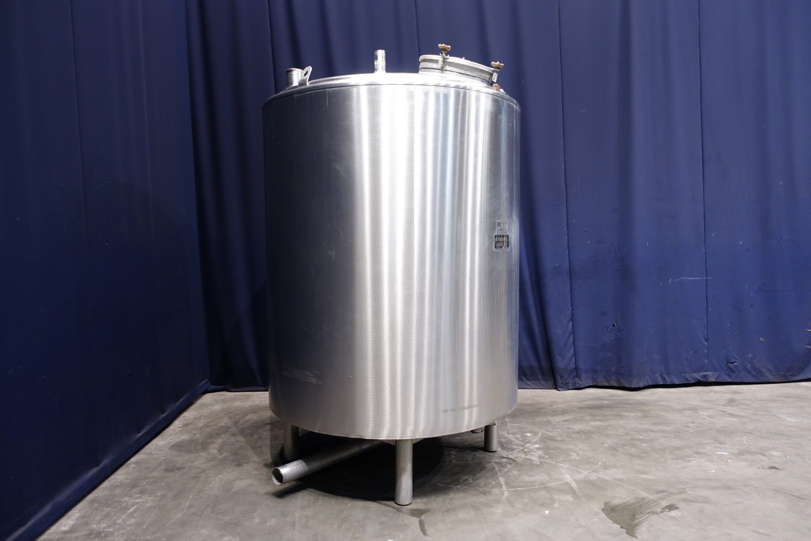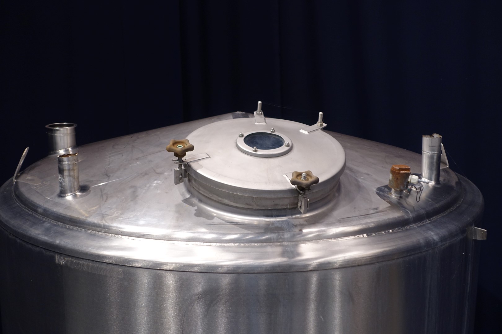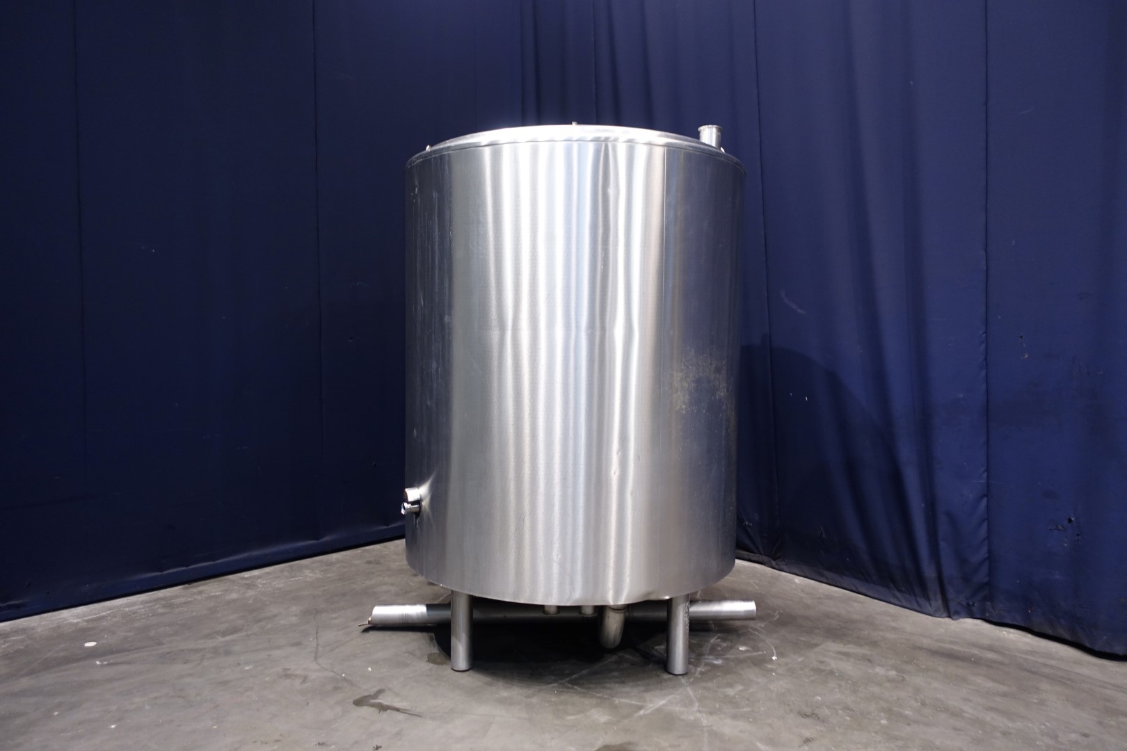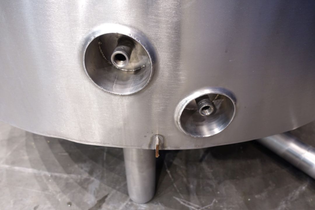 Insulated heatable cip tank. overflow pipe integrated, 2x inlet and outlet connections 4" outlet height: 15 cm. 1 x level sensor on top. On side connections for sensors. has a steam injector for low noise smooth injection of steam into water or lye for heating. Breather. Manhole in top, round, diameter 44 cm, sight glass in manhole lid. 4 Feet. Inside dimensions of tank: Ø 160 cm and height 200 cm. Total dimensions: 180 x 230 x 270 cm.