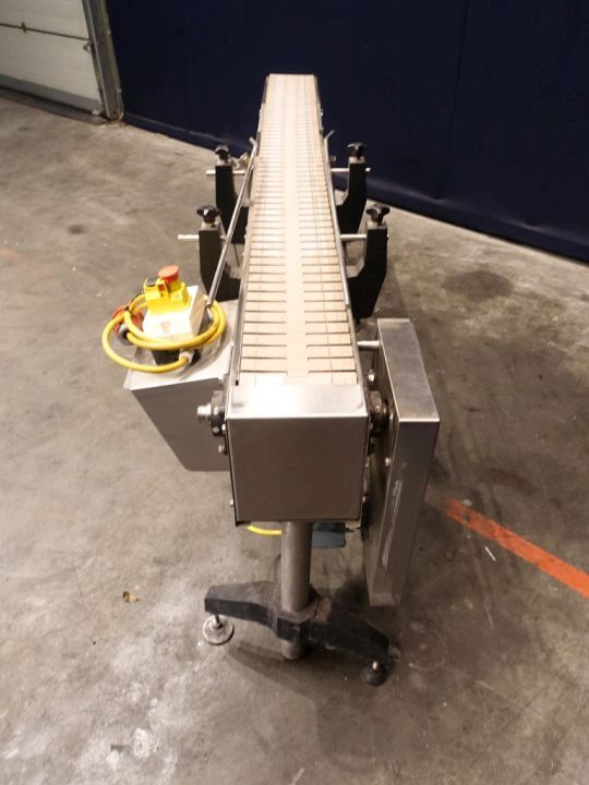 Chain conveyor. Effective chain: 220 x 19 cm. Motor: 0,18 kW n1: 1620 rpm - n2: 83 rpm. Horizontal. Total Dimensions: 230 x 55 x 100 cm.