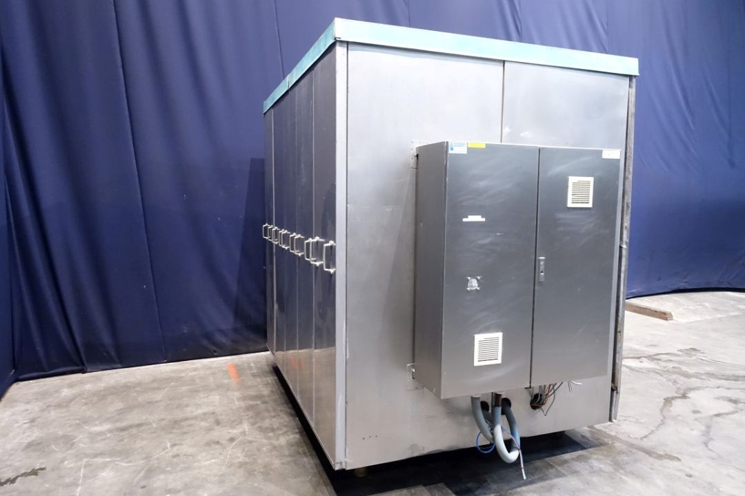 High pressure homogeniser. 1 stage with hydraulic pressure control. 5 Pistons, piston diameter: 58 mm and stroke: 90 mm. Stainless steel cladded in sound proof box < 80 dB (Rannie Milieu). Current motor power: 200 kW - 985 rpm and maximum pressure in current confirguration with this motor 200 bar. Overpressure valve. Electronic pressure transmitter. Pulsation demper on inlet and outlet. 2 Side inlet. Remote pressure control. Connections: 3''/3''. Control panel with Siemens S7-300 PLC. Total dimensions: 195 x 275 x 260 cm.