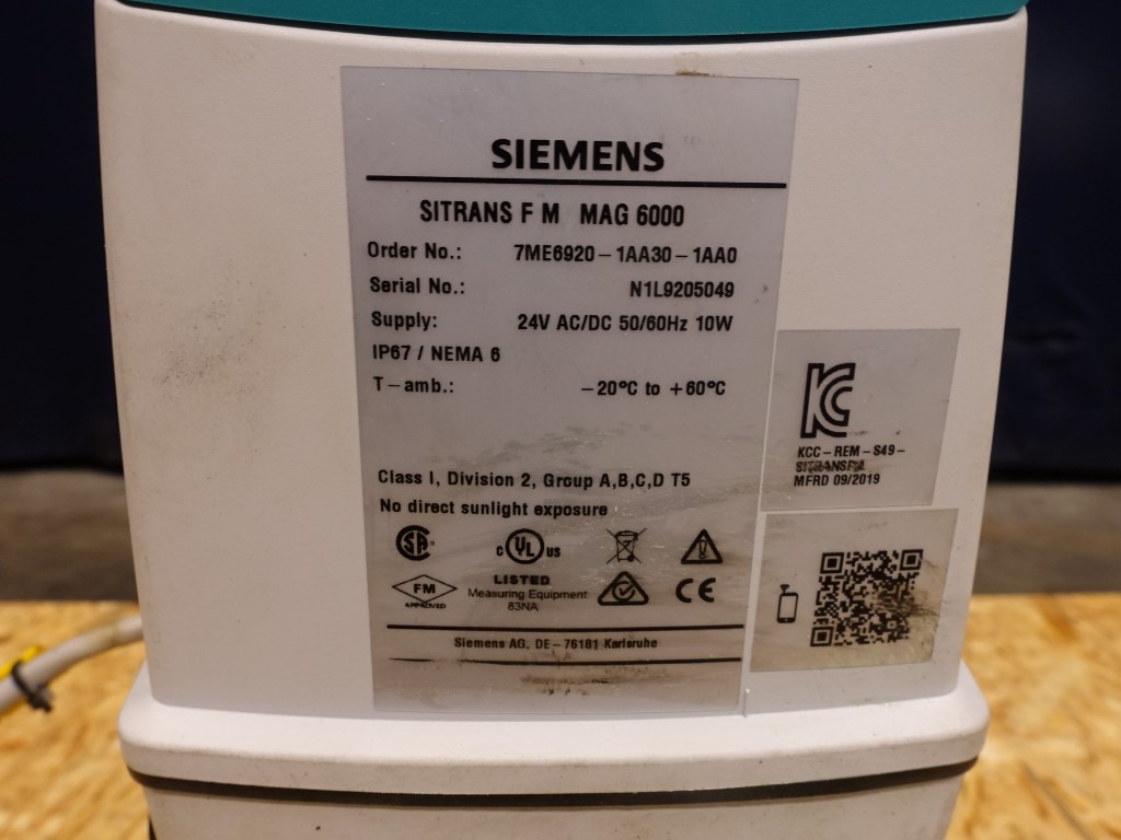 Magnetic flow transmitter. Connections: DN 40 / DN40. Electronic head, Siemens Sitrans F M Magflo MAG6000.