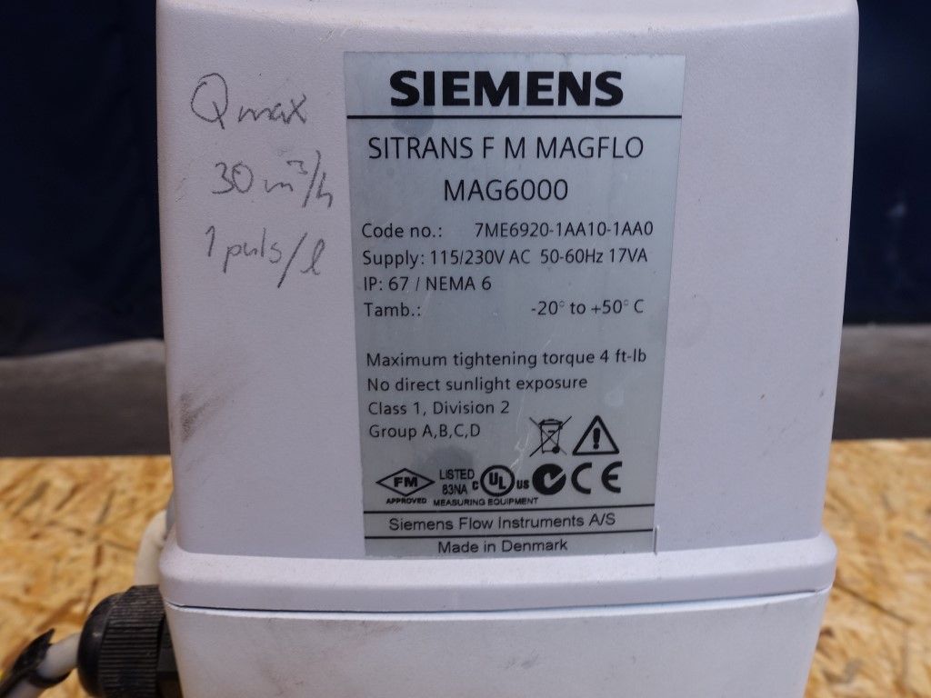 Magnetic flow transmitter. Connections: DN 40 / DN40. Electronic head, Siemens Sitrans F M Magflo MAG6000.
