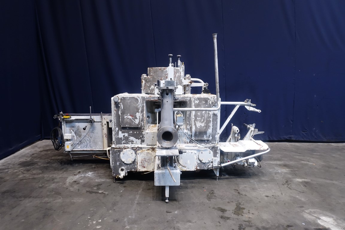 Fully automatic filling and wrapping machine for butter in aluminum foil or parchment paper. Feeding system by direct connection (piston missing). Outfeed conveyor. Incomplete format set size ± 115x75 mm. No photocell for paper correction or date coder. Control panel with relay control, poor condition. Min - max weight adjustble by changing format set 100 - 500 gram. Total dimensions: 310 x 180 x 200 cm. Weight: 1.235 kg.