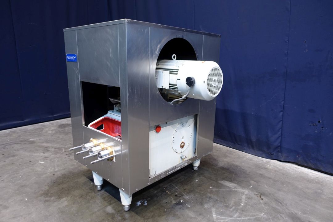 High pressure pump used for margarine. (only drive work) The conveying pump is a 3 piston pump with 3 suction and pressure valves. It conveys the margarine emulsion coming from the premix / buffer vessel into and through the cooling cylinders of the crystalliser. Maximum pressure: 50 bar. Piston diameter: 60 mm and stroke: 80mm. Motor: 22 kW - 45 A - n1: 1.400 rpm - i 4,59 - n2: 305 rpm. Total dimensions: 135 x 153 x 164 cm -Weigth 1.320 kg. Exlcuding pumphead!