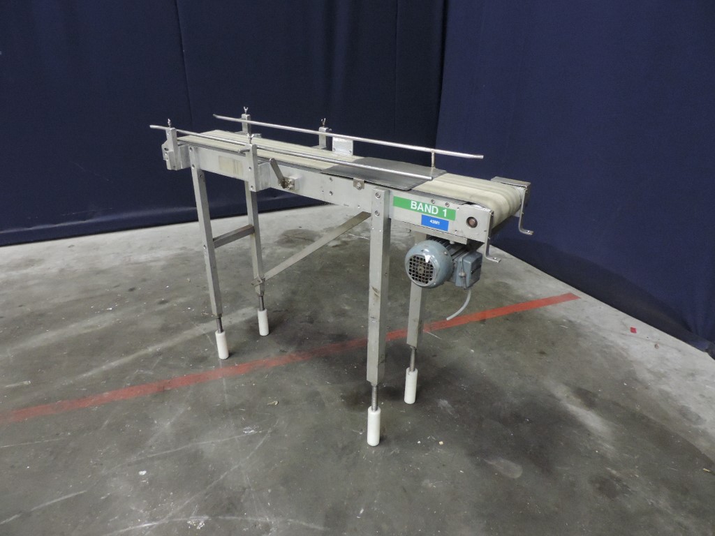 Transport conveyor: Belt length 130 cm/ width 20 cm. Motor 0.18 kW, 0.77A, 1330/ 104rpm - Total dimensions 135 x 45 x 100cm.