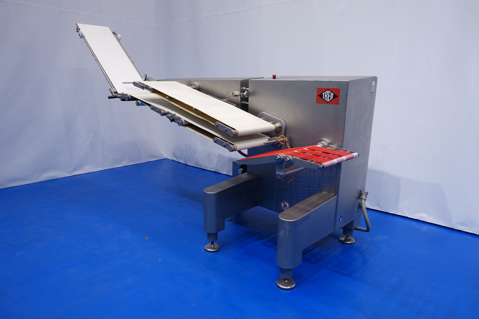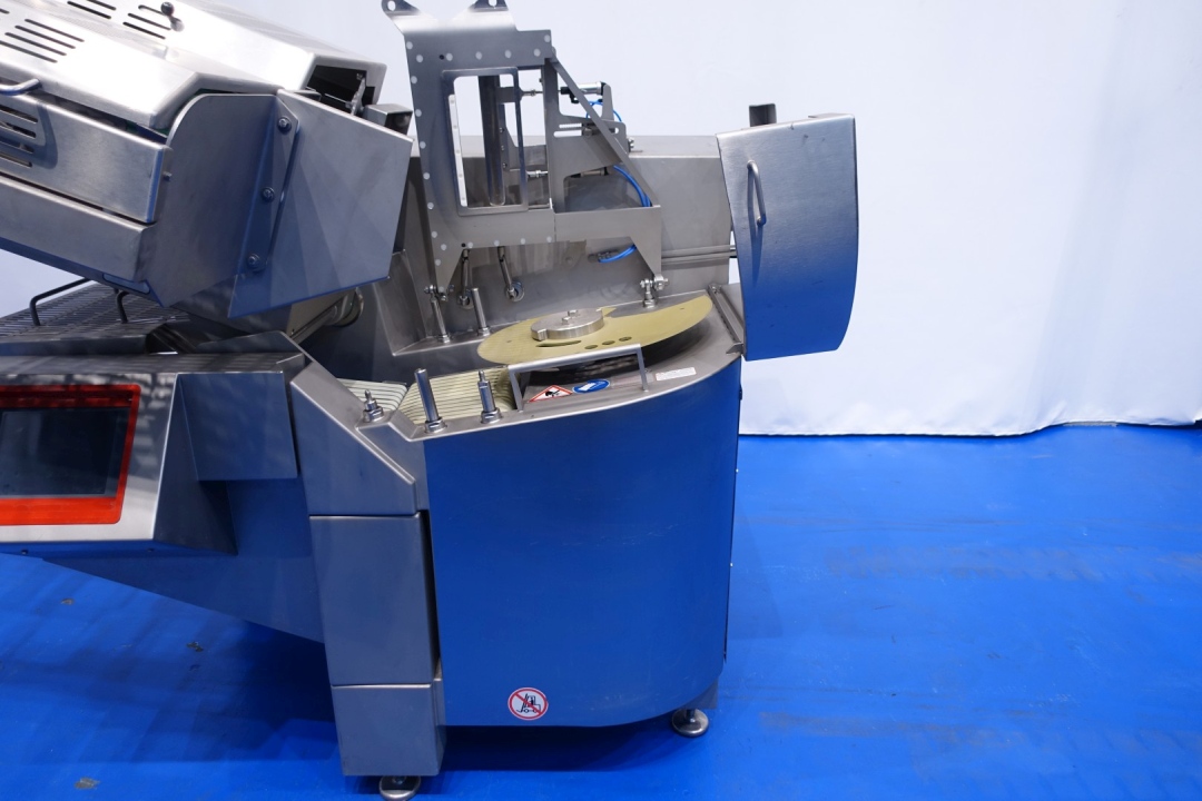 Cheese Slicer with automatic loading for all types of (semi) hard cheeses but also meat. The machine can be used in different ways stand alone or in production lines. Capacity up to 3200 cuts / min, slicing thickness range – 0.5 – 25 mm, chamber cross-section – 280 x 160 mm, length of the cut product (max.) – 1200 mm, height after unfolding – 2900, max. cut-off length (mm) 0.5–25, max. stacking height (mm) 100, touchscreen, up to 200 storable cutting programs, cutting statistics, automatic loading, rotatable loading chamber, infeed rollers for optimum guidance of long products. Sorting line with tray feeder for directly transporting products to the packaging machine. Total dimensions (2 parts): 530x180x215 (lxwxh) cm - total weight: 1.978 kg.
