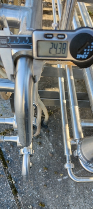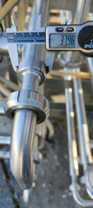 Monotube, inner diameter (product) 23mm outer diameter (water) 40mm, 42 tubes x 3 mtr each. total dimensions: Length 3,00 mtr x Width 1,30 mtr, Height 1,50 mtr. On a stainless steel frame. Flexibel in using, many loops can be made.