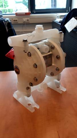 New membrane pump. Leak-free bolted construction provides a greater positive seal with Versamatic's E5 1/2" pump. Elima-Matic®'s air valve system provides the reliability you need and lets you transfer chemicals safely and confidently. Maximum Air Pressure: 100 PSI/ 7 bar. The E5 1/2" Pump: •Supplies a corrosion-resistant air section •Provides multiple porting options •Offers an adaptable footprint •Is self-priming